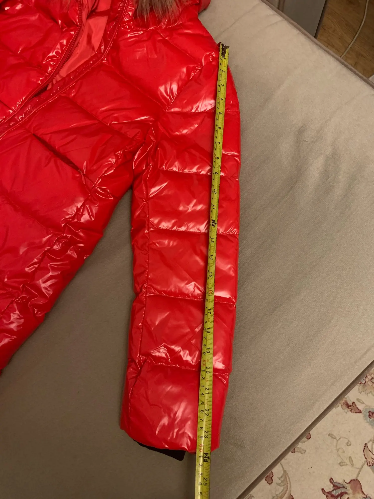 Долго ждали пуховик, до Алматы шел 45 дней, но ожидания не оправдались - качество на 4 -; тонкая, до -30 сильно сомневаюсь, молния с трудом застегивается, цвет уходит в оранжевый, петли для капюшона не все на месте; но я готова была закрыть на все это глаза и оставить, в целом потому- что куртка смотрится неплохо ( фасон хороший, стройнит); по отзывам такое ощущение, что куртка черного цвета лучшего качества)); но продавец ошибся с размером - на бирке указано 160, по замерам - длина изделия оказалась всего 80 см, длина рукава 57, то есть по факту -размер 10-12, конечно безнадежно мал. Открываю спор