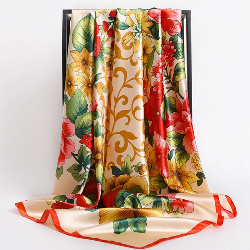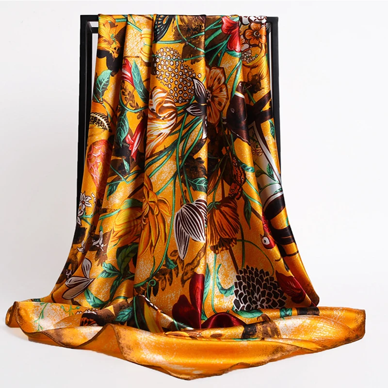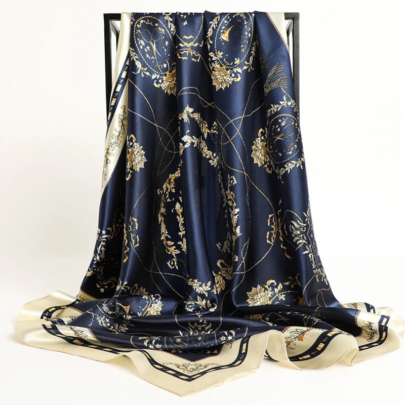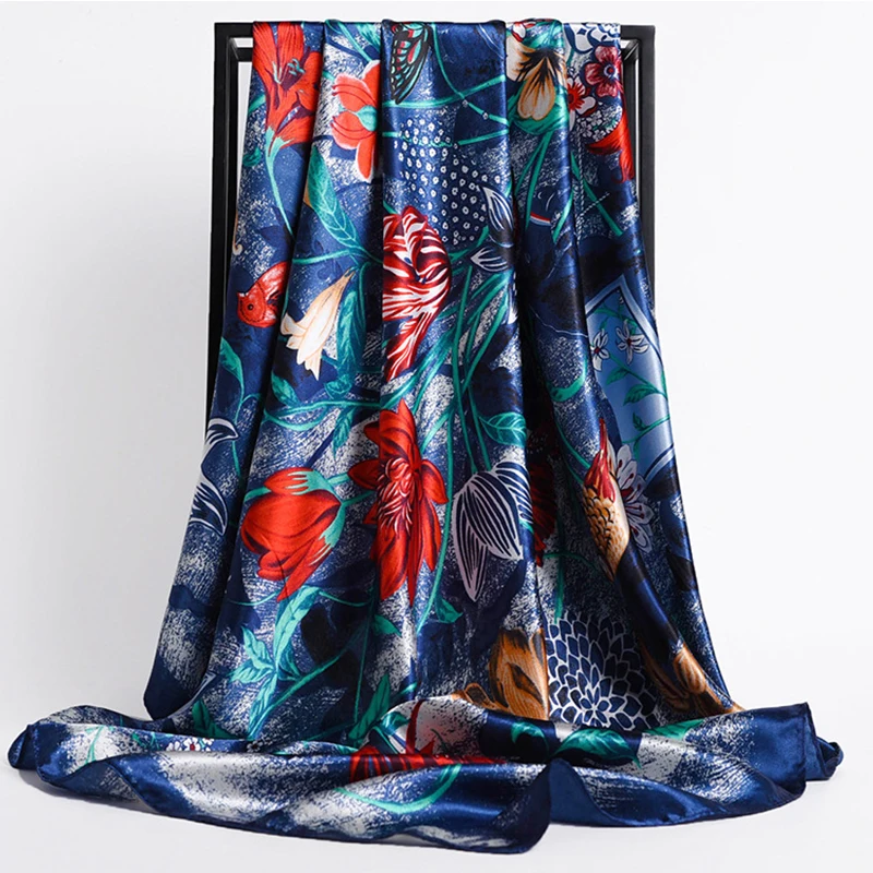 Новинка 2021, роскошные качественные шелковые шарфы, летний женский квадратный шарф 90 см, солнцезащитные Шали, женский модный пляжный хиджаб