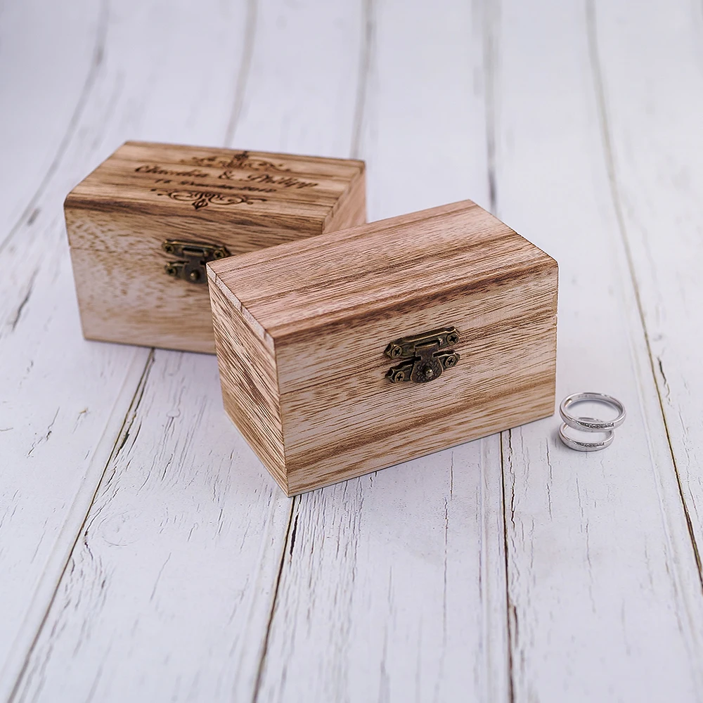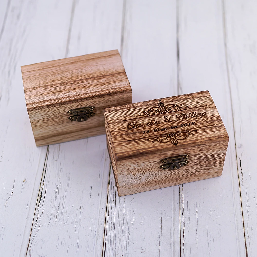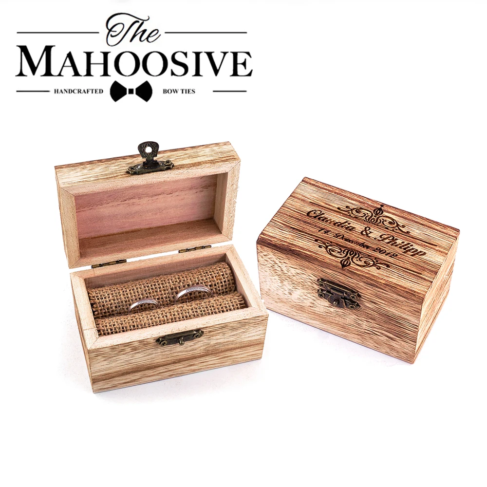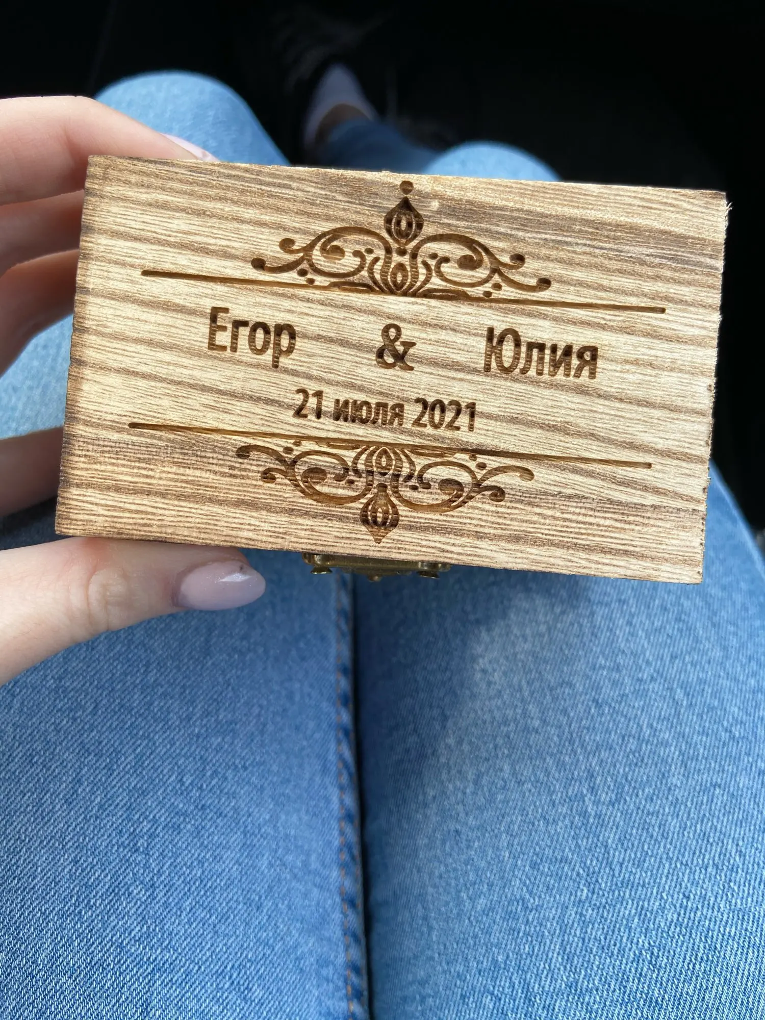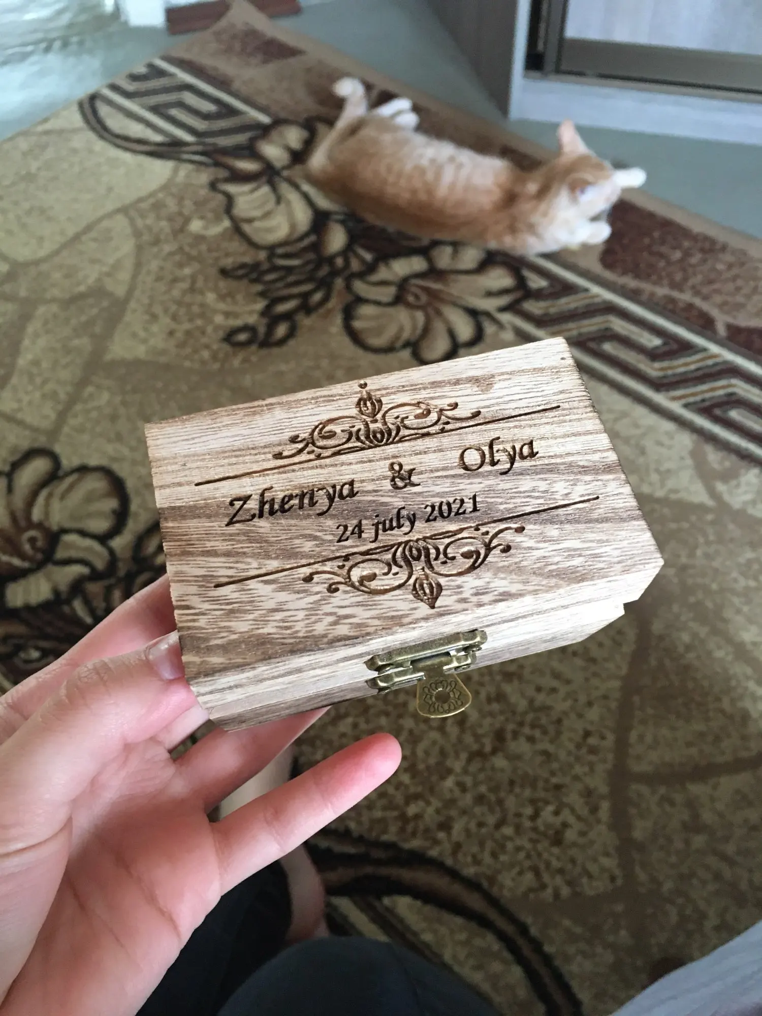 Деревянная коробка для обручальных колец, персонализированная, с именами и датой