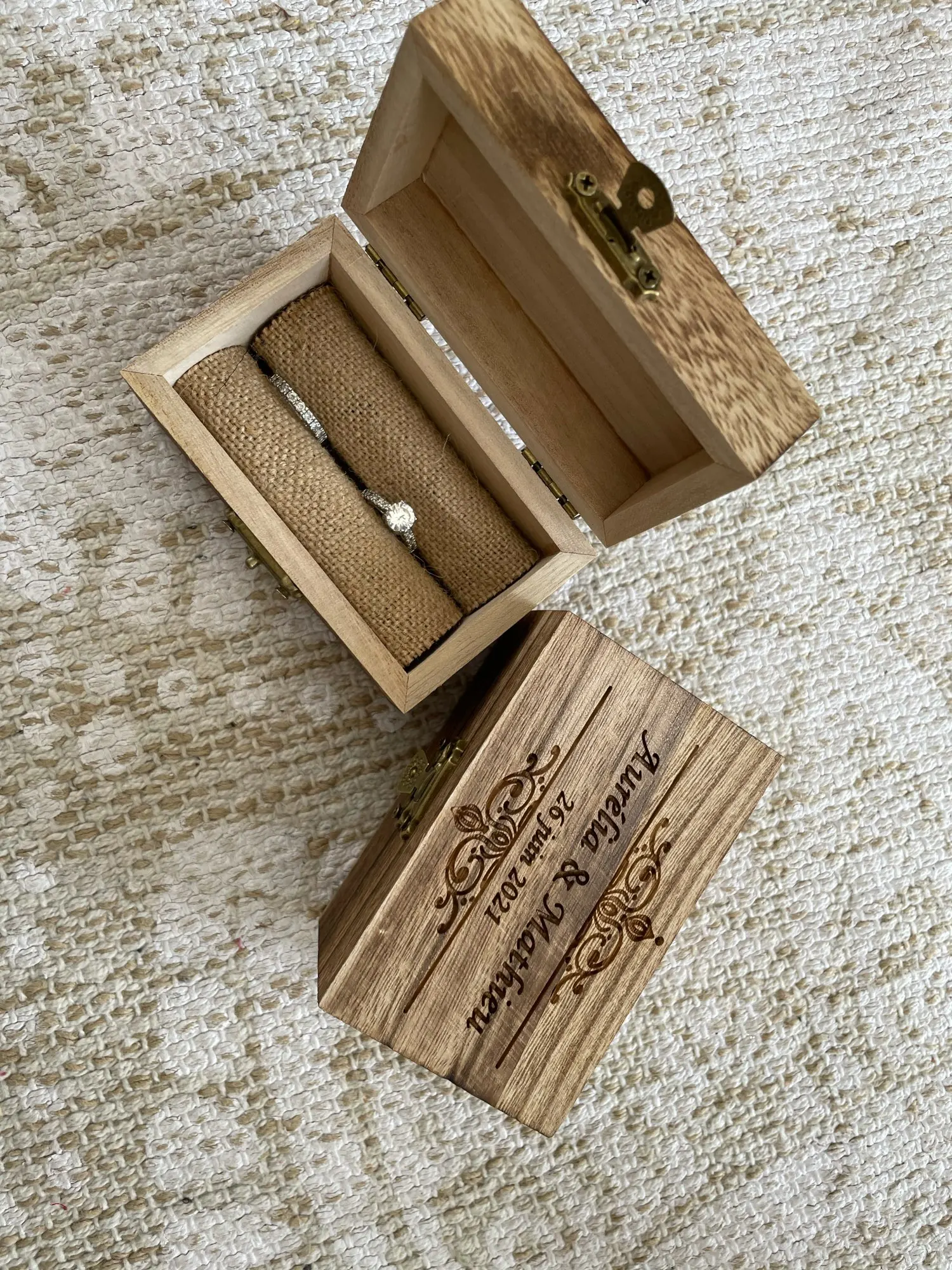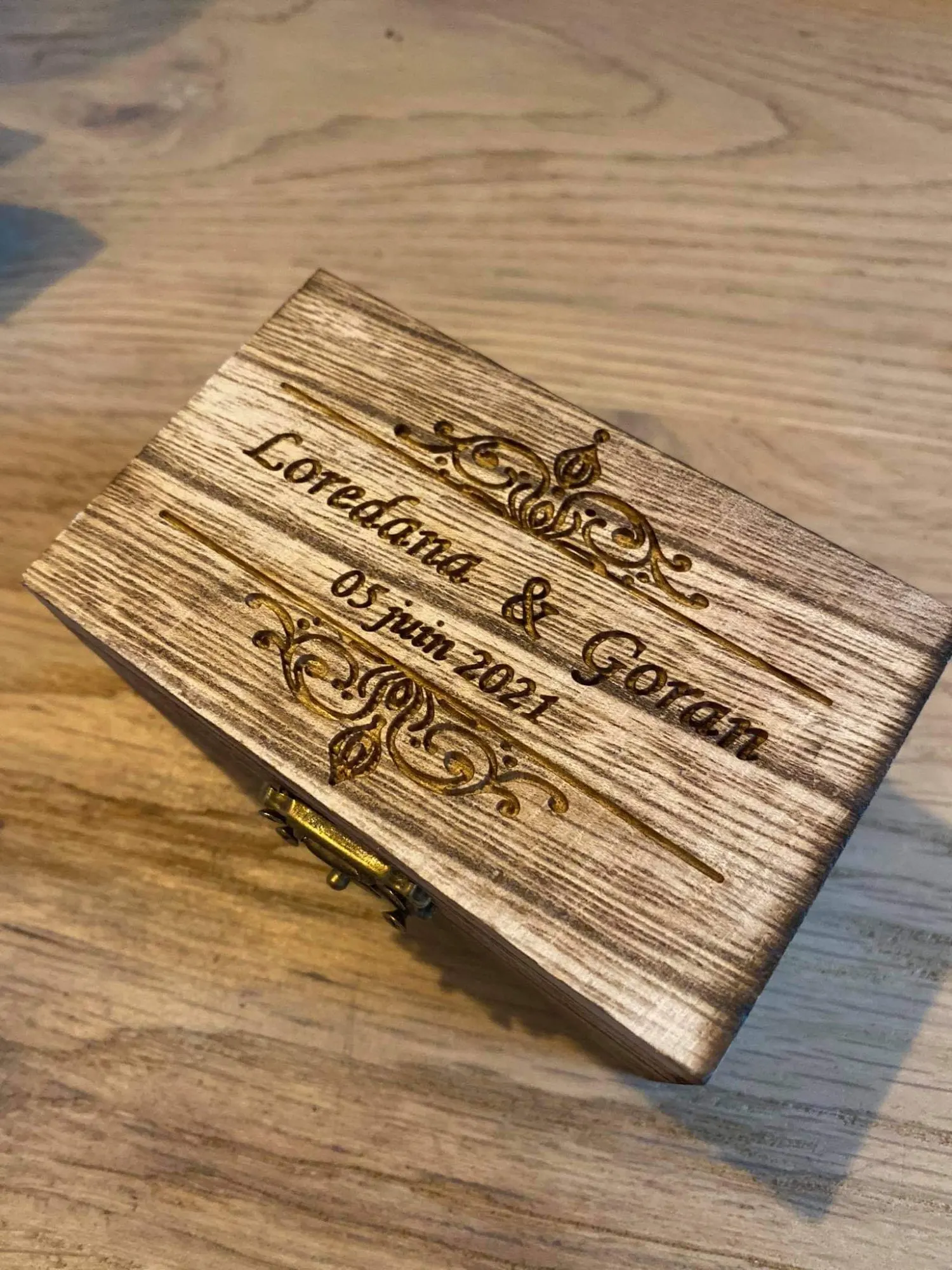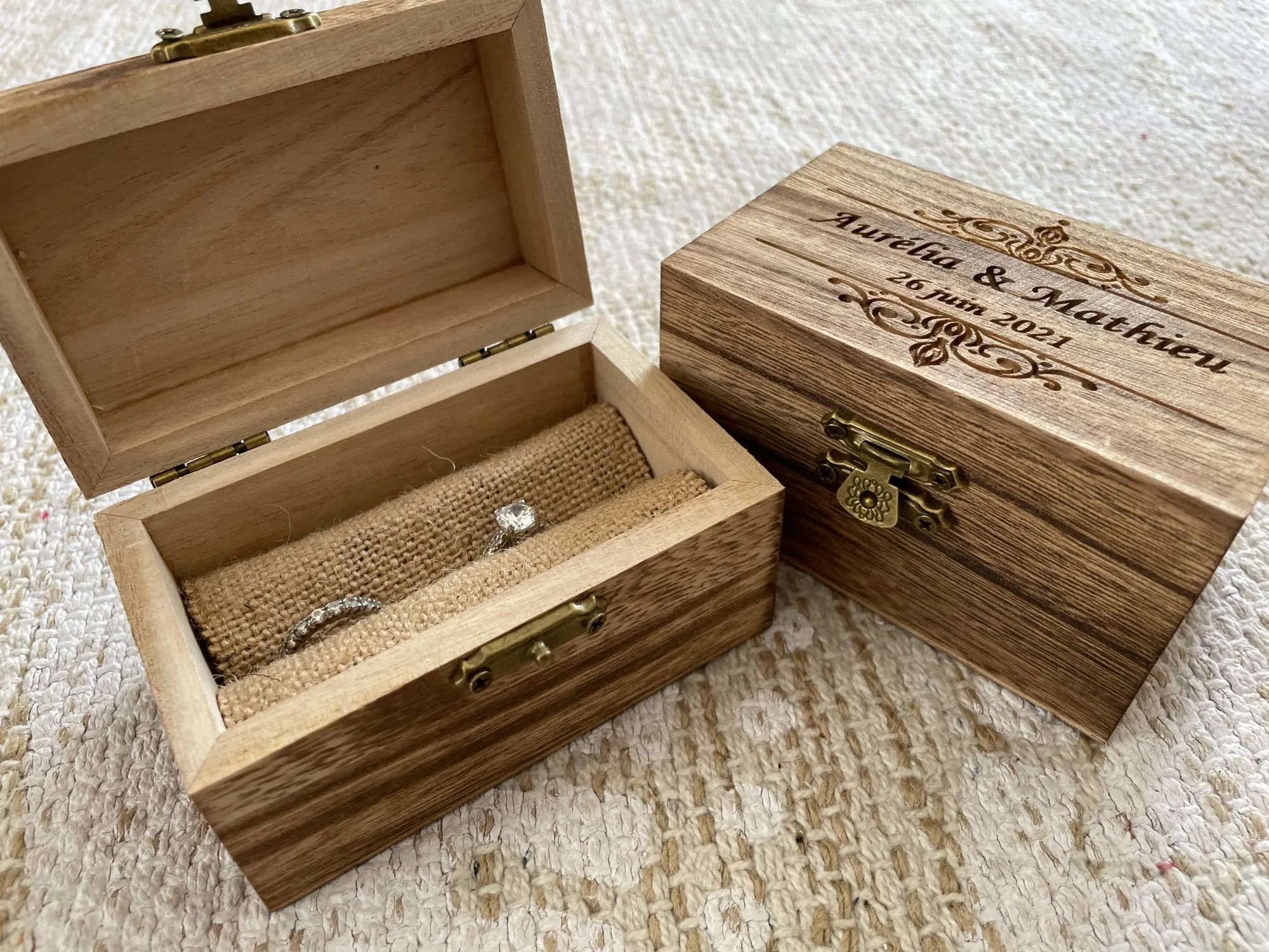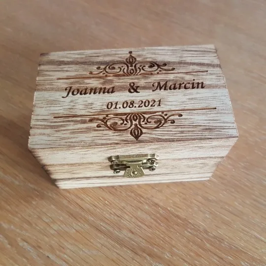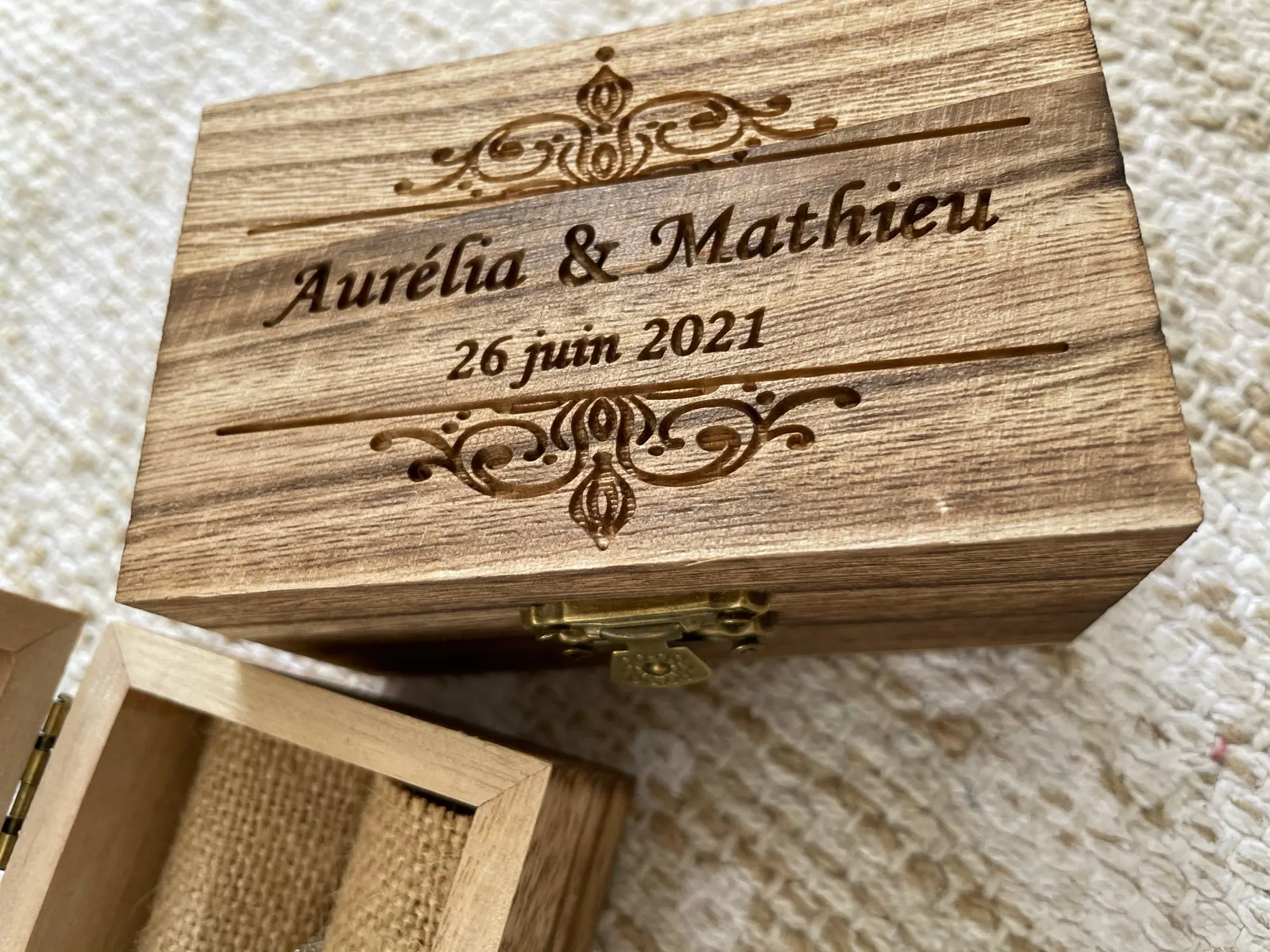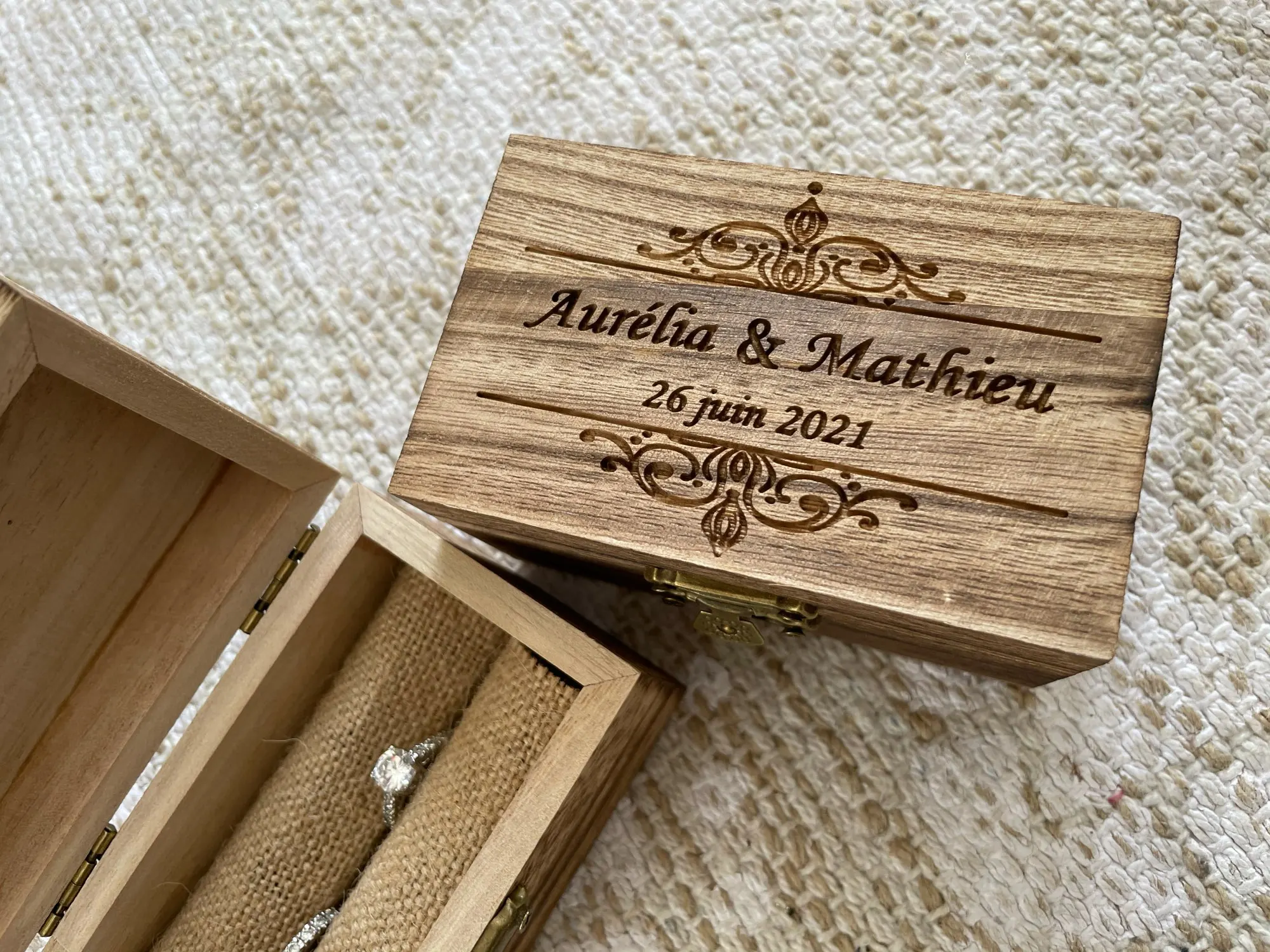 Деревянная коробка для обручальных колец, персонализированная, с именами и датой
