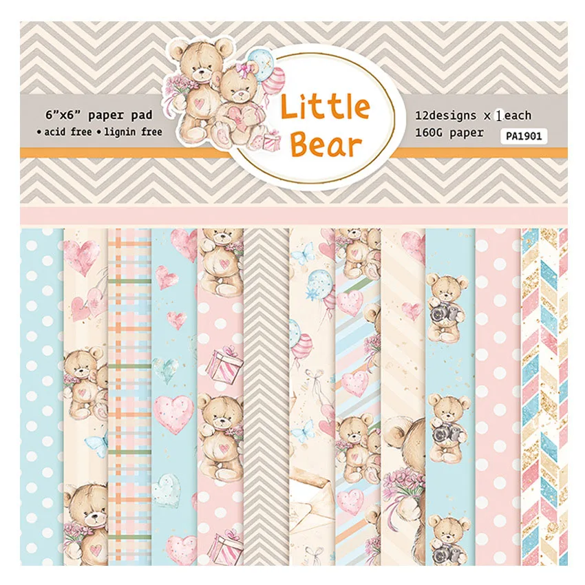 Бумажный фон для скрапбукинга с изображением медвежонка, 24 листа, 802