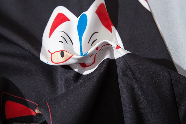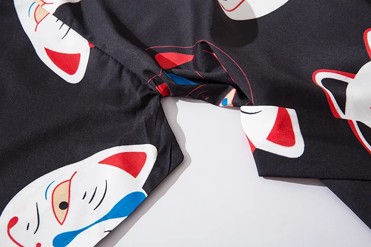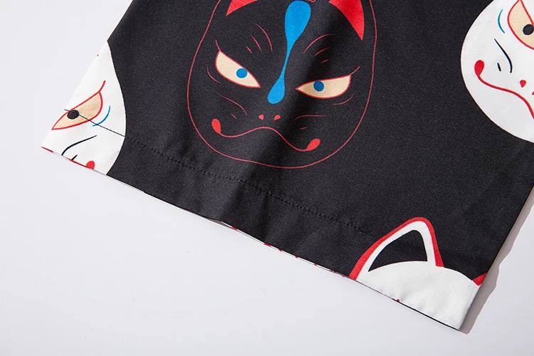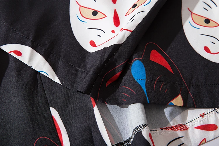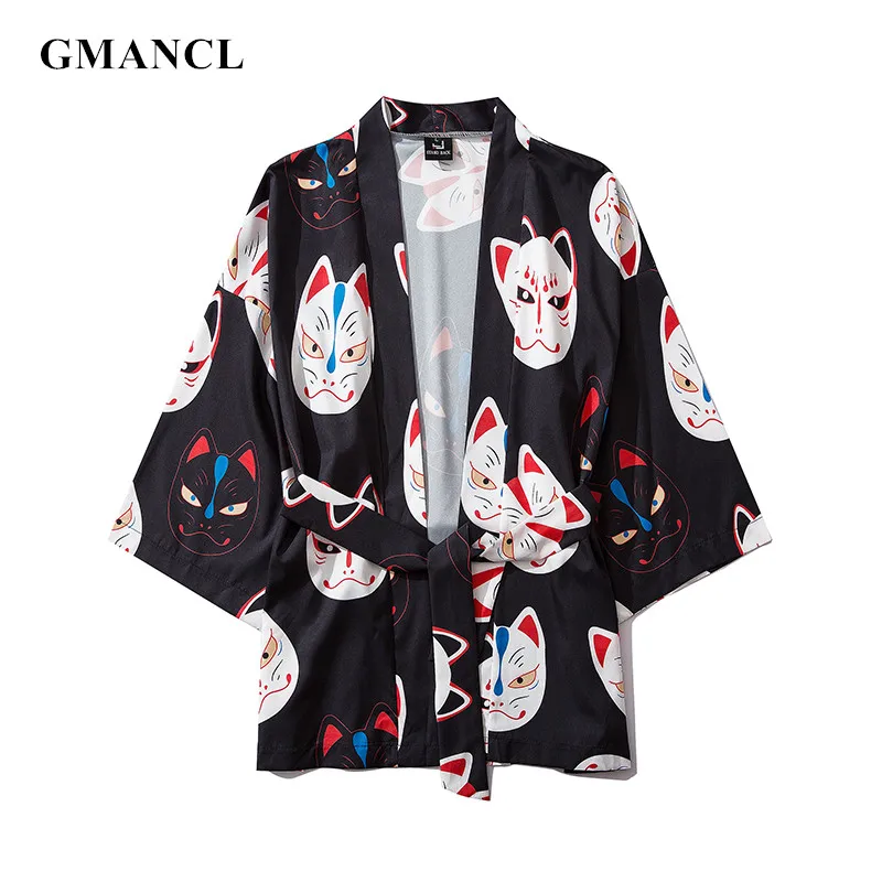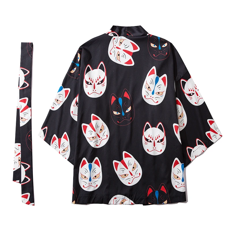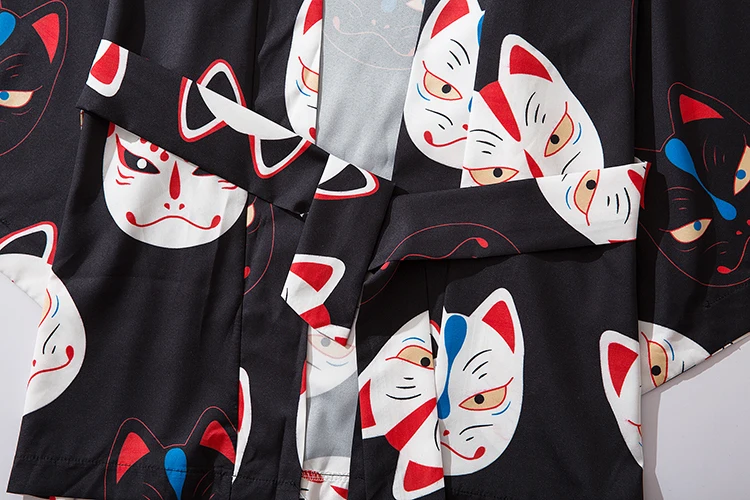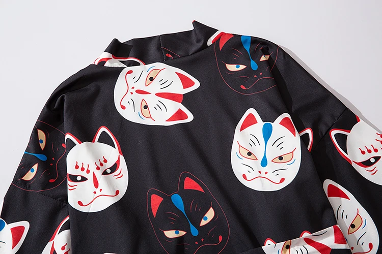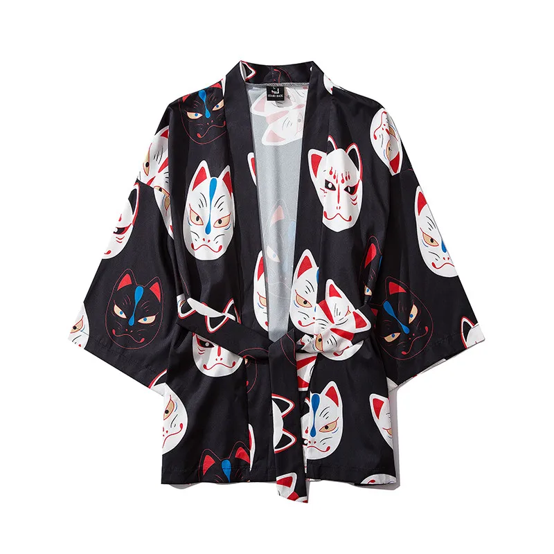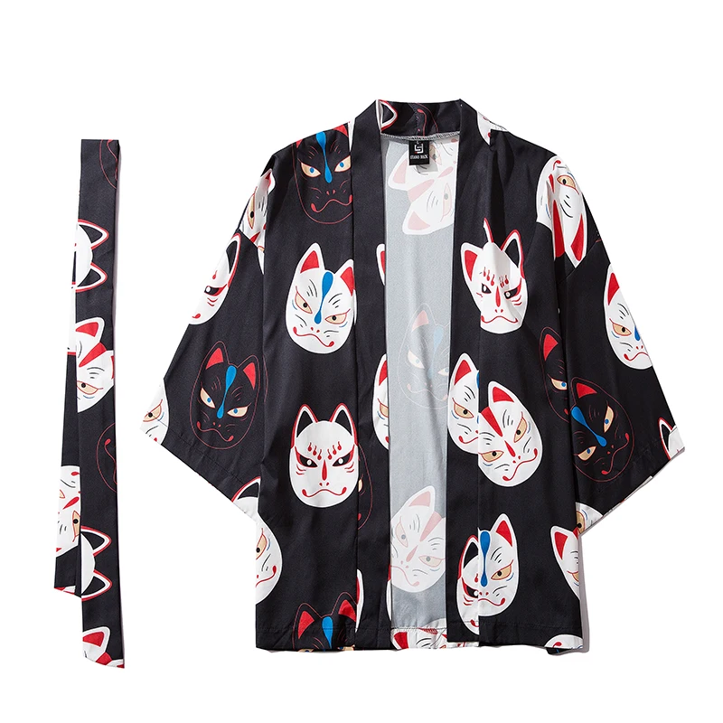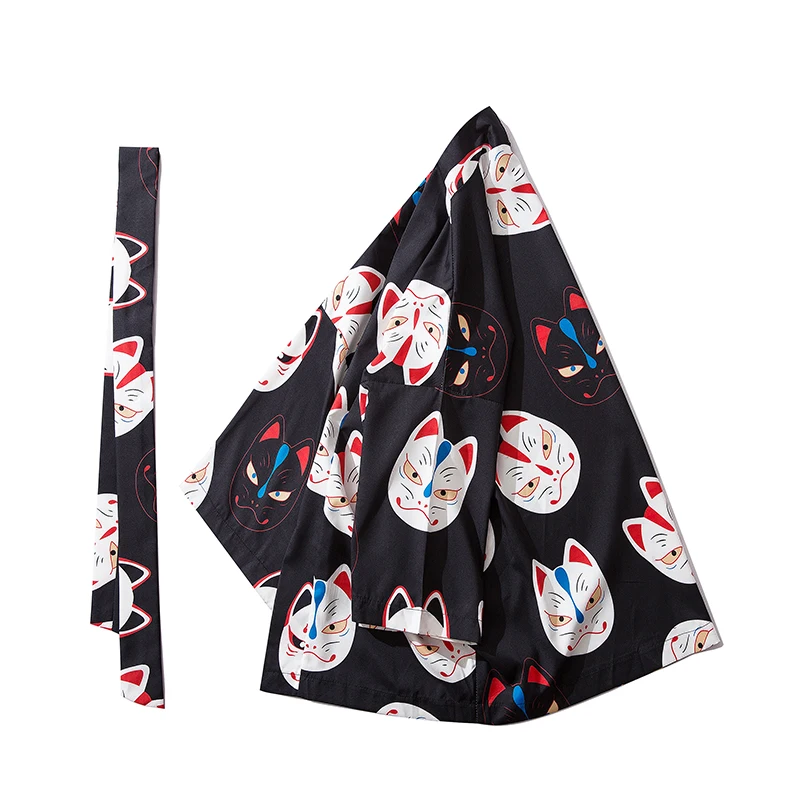 Мужское кимоно с коротким рукавом и принтом кота, уличная одежда в стиле Харадзюку, халат в стиле хип-хоп, кардиган с поясом