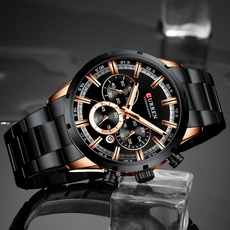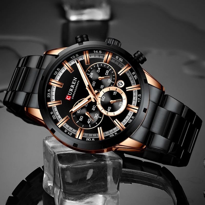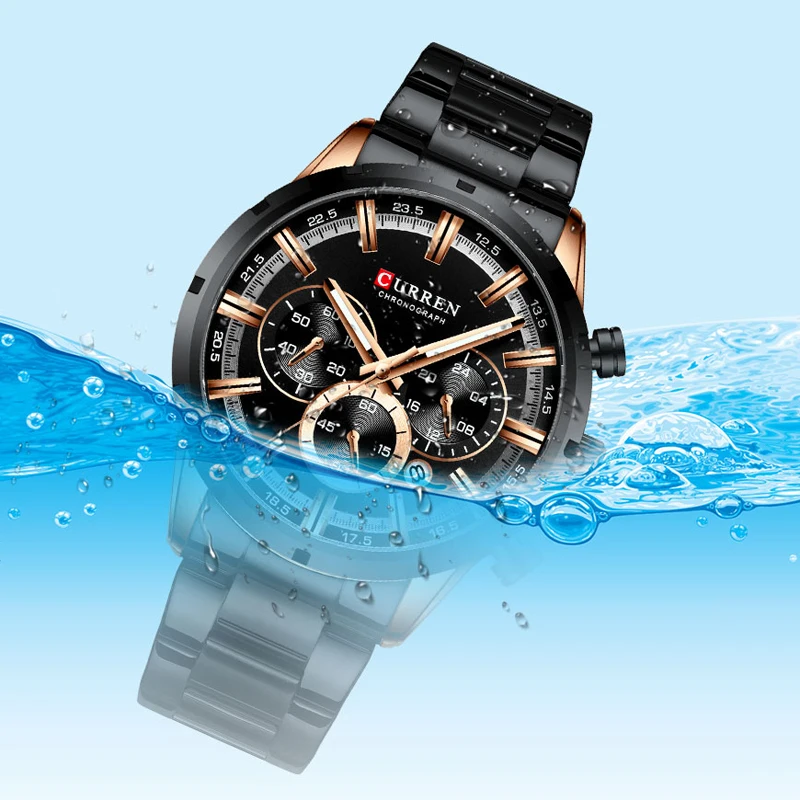 Часы наручные CURREN Мужские кварцевые, классические спортивные водонепроницаемые в эстетическом стиле, из нержавеющей стали