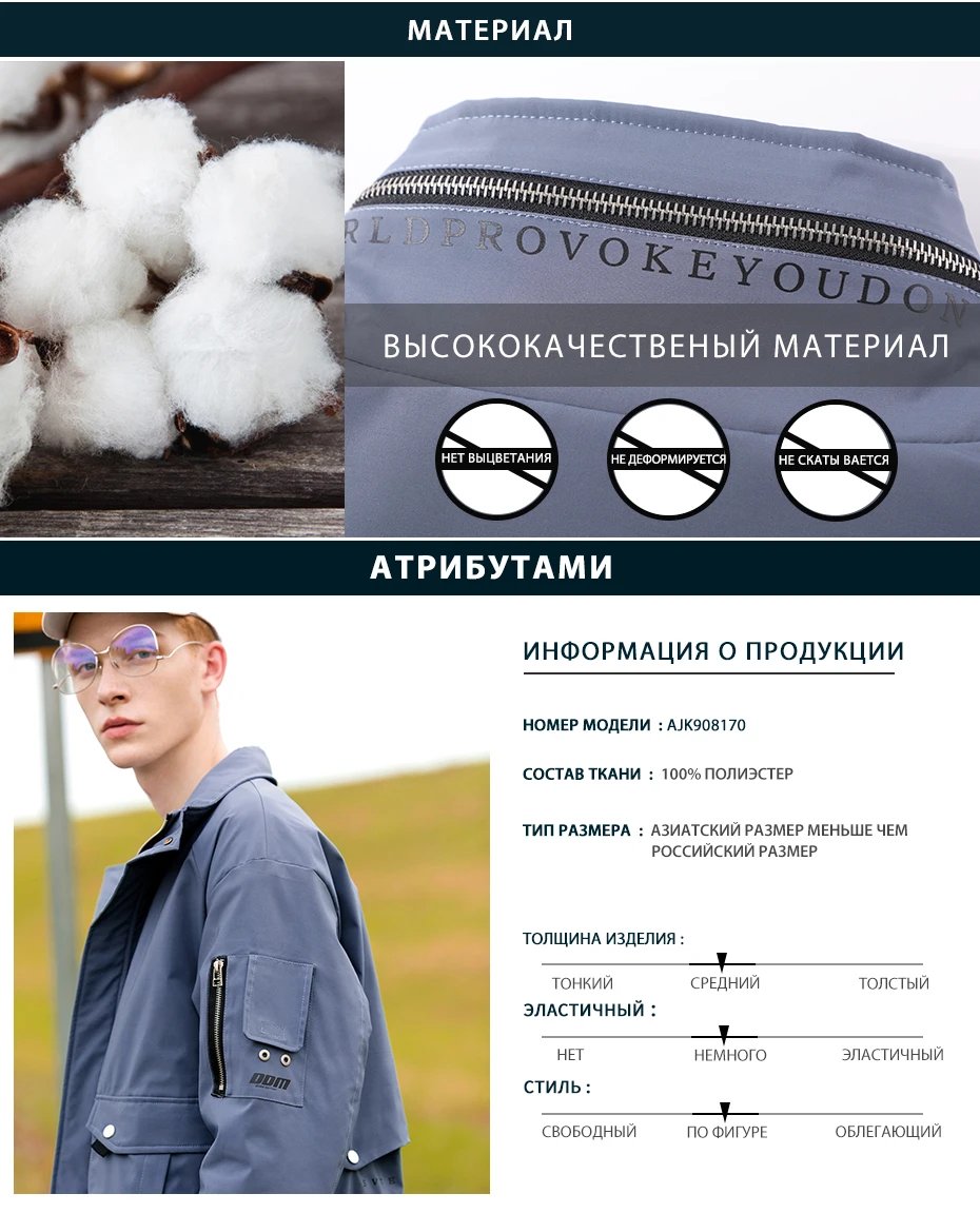Мужская ветровка Pioneer Camp, синяя Повседневная ветровка на осень и зиму 2020, AJK908170