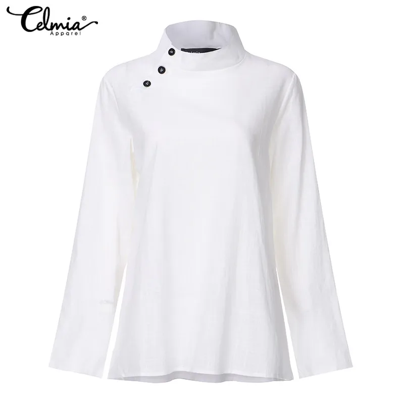 Женские топы и блузки Celmia 2021, модная туника, рубашки, Осенние винтажные блузки большого размера на пуговицах с длинным рукавом и воротником-стойкой