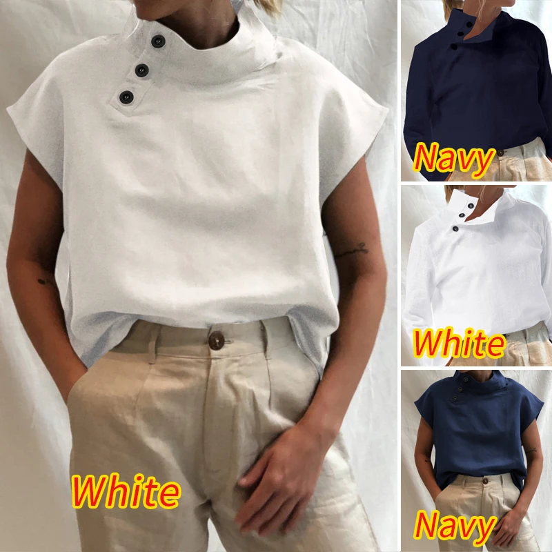 Блузка женская хлопковая льняная, с длинным рукавом, на пуговицах, ...