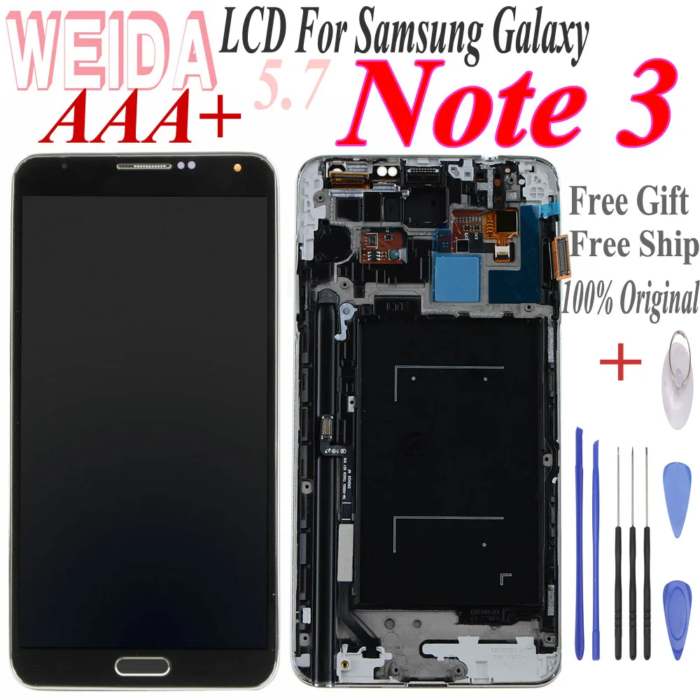 ЖК-дисплей с дигитайзером на SAMSUNG Galaxy Note 3, 5,7 дюйма, с рамкой, для Samsung Galaxy Note3, с дигитайзером на сенсорном экране, в сборе, для SAMSUNG Note 3, с рамкой