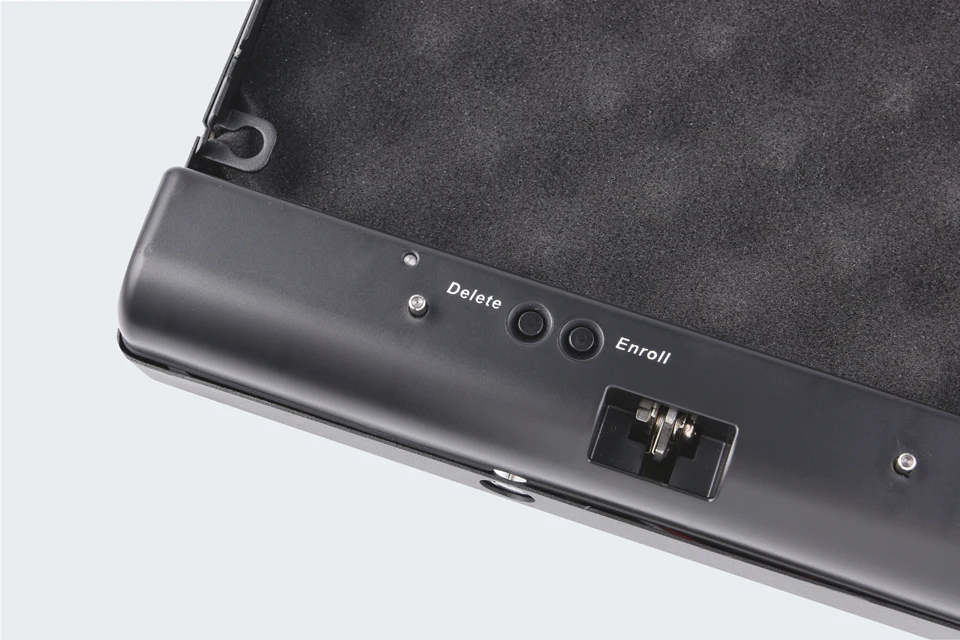Датчик отпечатков пальцев120 пользователей отпечатков пальцевРежим беззвучной разблокировкиОснащен защитной веревкой"Сигнализация низкого напряжения"Оснащен 2 запасными ключамиЗащита питанияСверхнизкое энергопотребление, 4 щелочные батареи AA с сроком службы до 12 месяцев19 Калибровочная сталь
