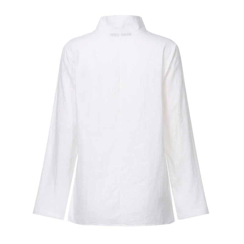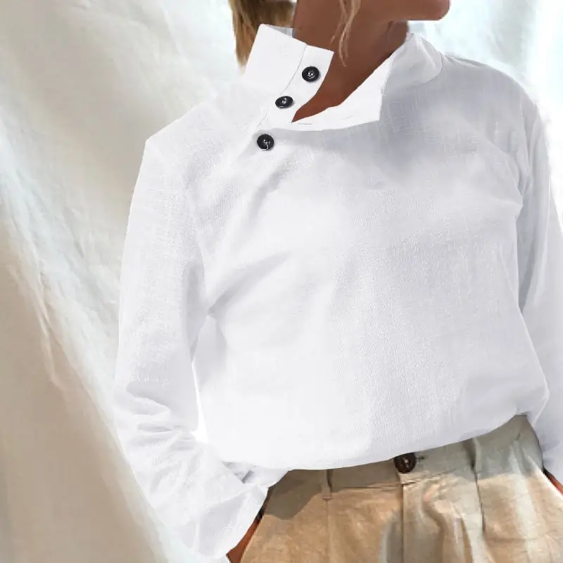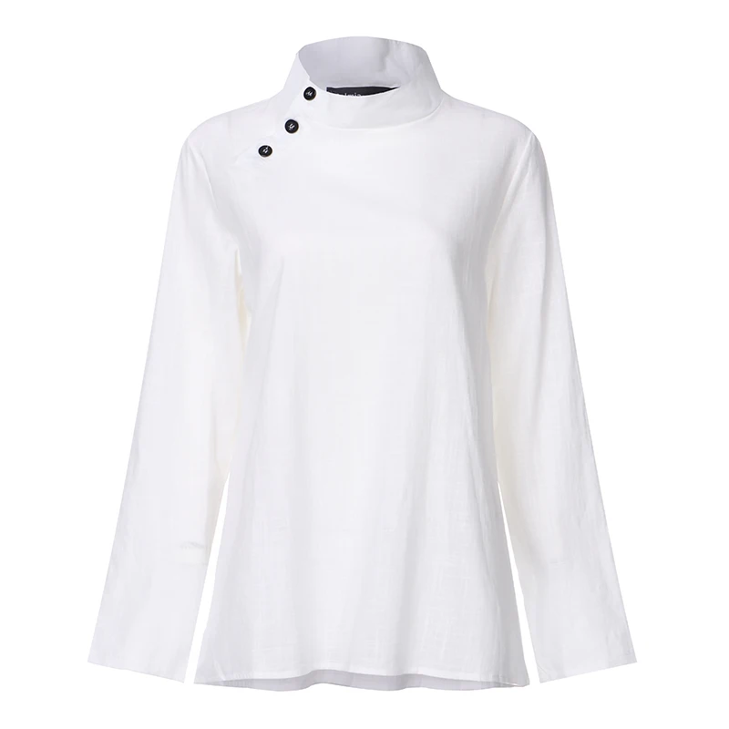 Топ-туника женский из хлопка и льна, с длинным рукавом, на пуговицах, свободный, на осень, 2021