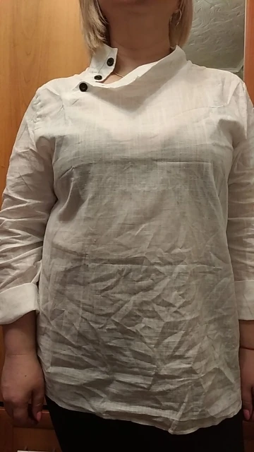 Отличная рубашка на лето (без рукавов)! Лёгкая, слегка просвечивает, выполнена очень качественно. На ОГ 97 отлично подошёл размер L. Доставка очень быстрая! Рекомендую к покупке.