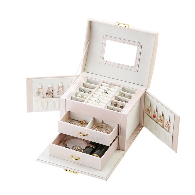 Шкатулка для ювелирных изделий из кожи, трехслойный портативный органайзер для украшений, щедрый Шелковый бокс для ожерелий, серег, колец