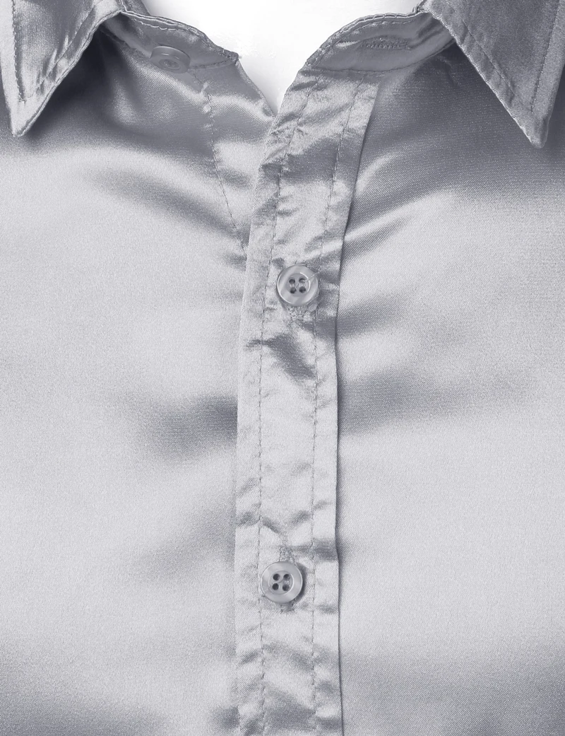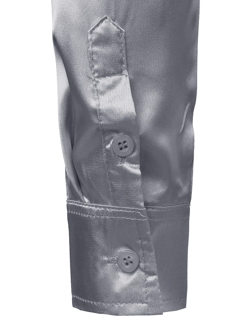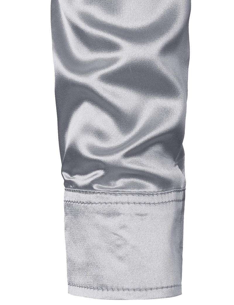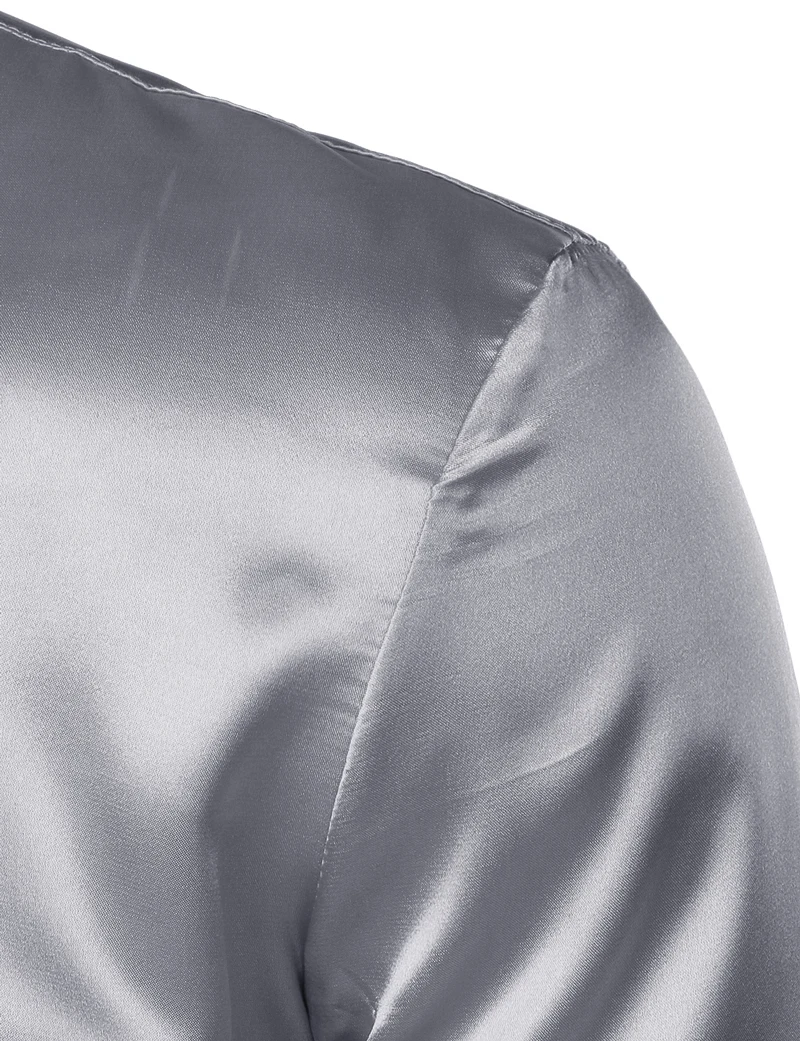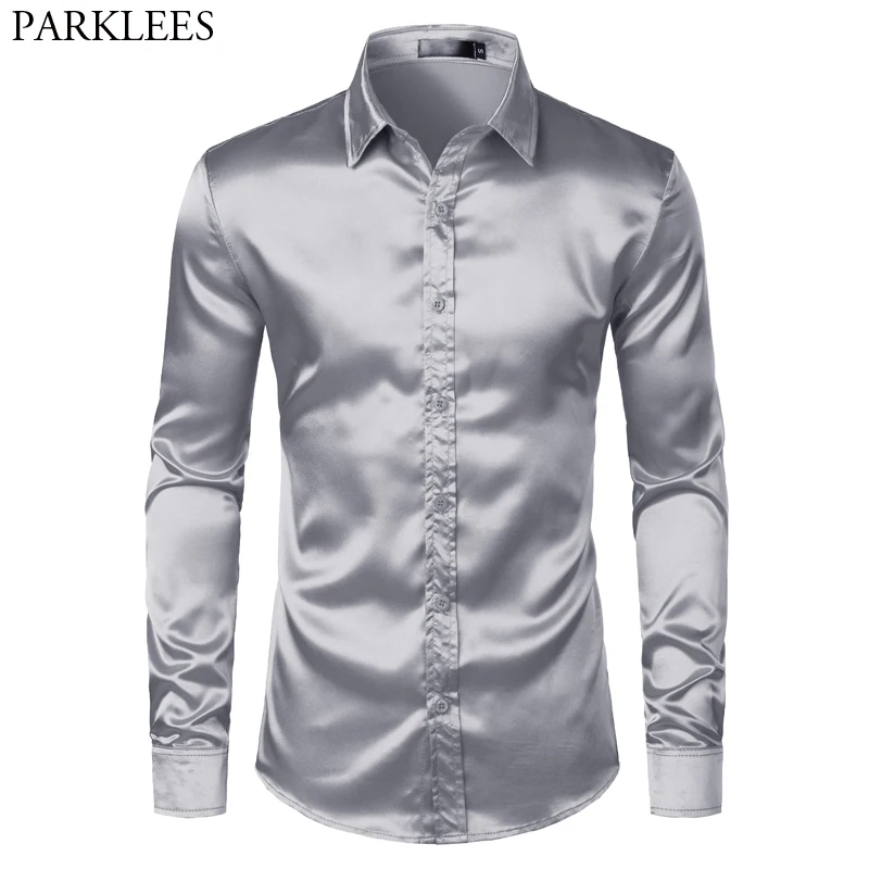 Мужская атласная Роскошная рубашка, приталенная шелковая Повседневная рубашка для танцевальной вечеринки, мужская рубашка с длинным рукавом, без морщин, смокинг, мужская Серебряная рубашка