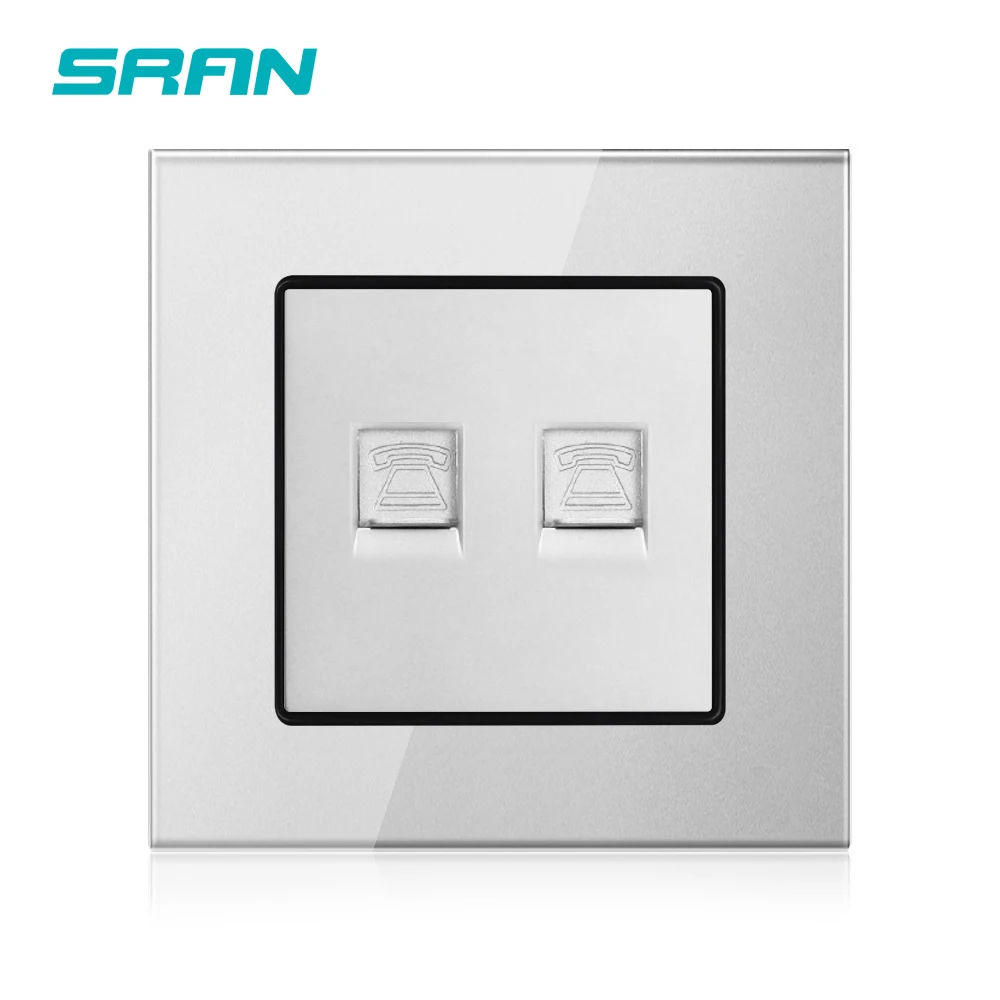 Двойная Телефонная настенная розетка SRAN, RJ11, универсальная электрическая розетка, панель из закаленного стекла, 86 мм х 86 мм, A601-080