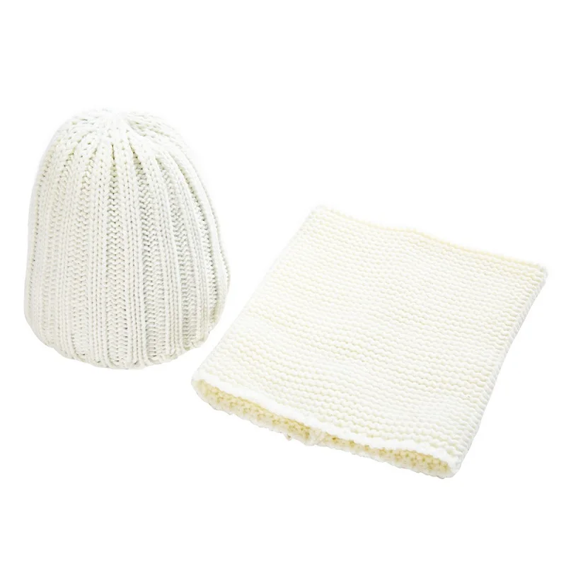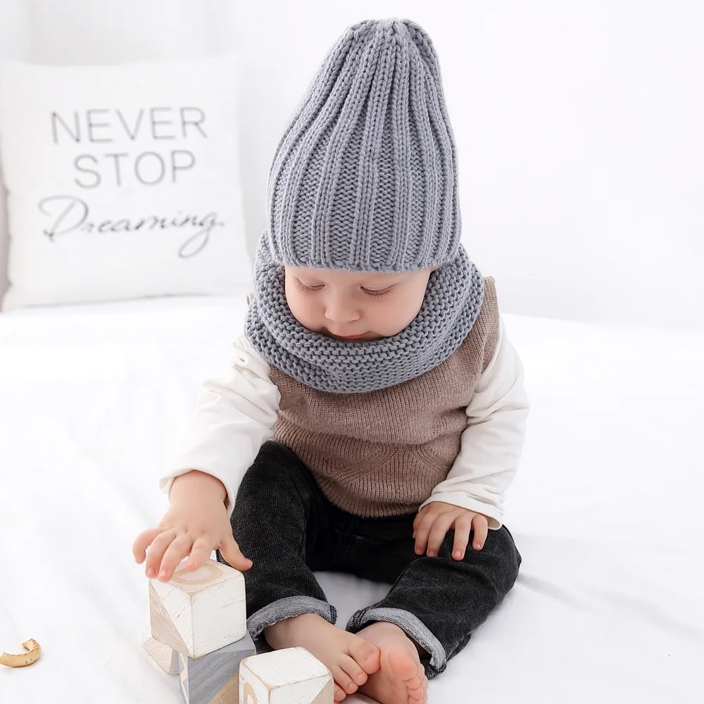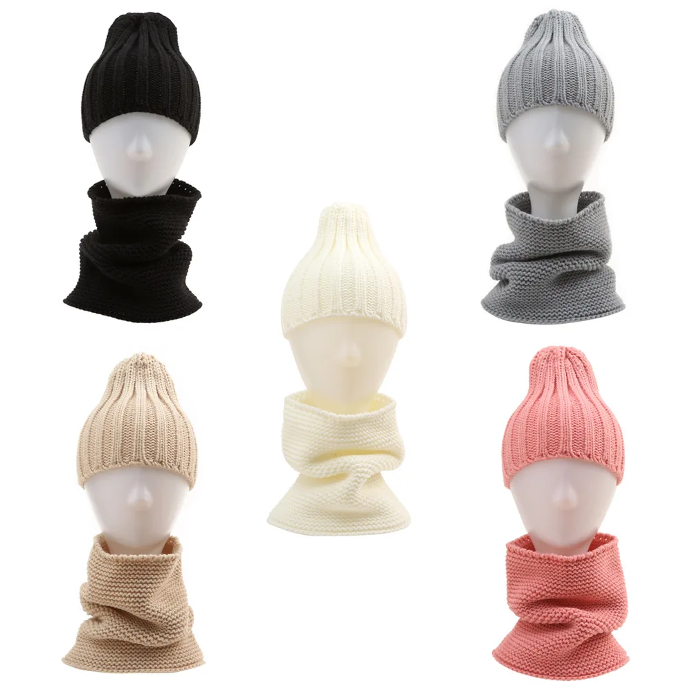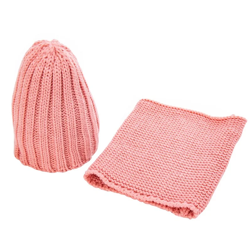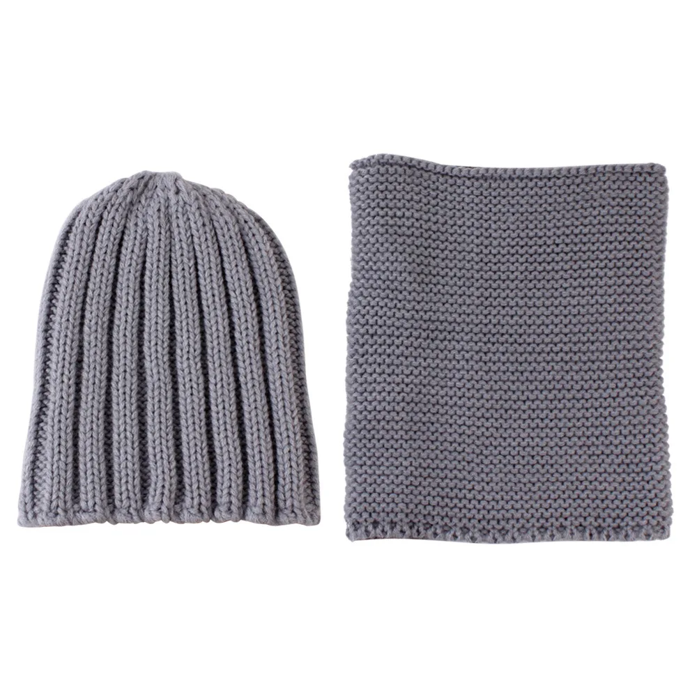 Шапка Вязаная Детская, зимняя, однотонная, шапка и шарф