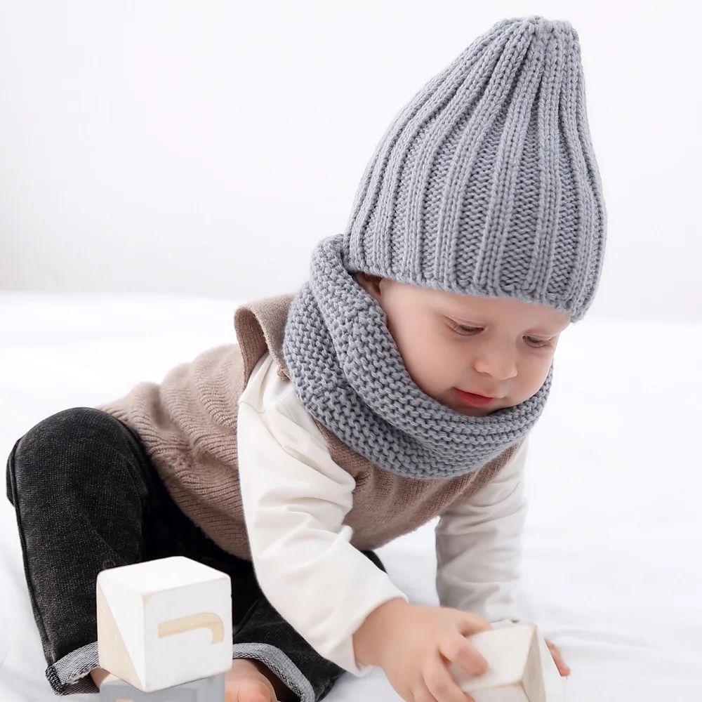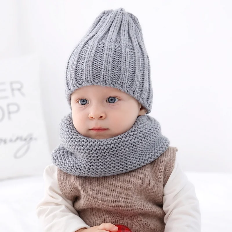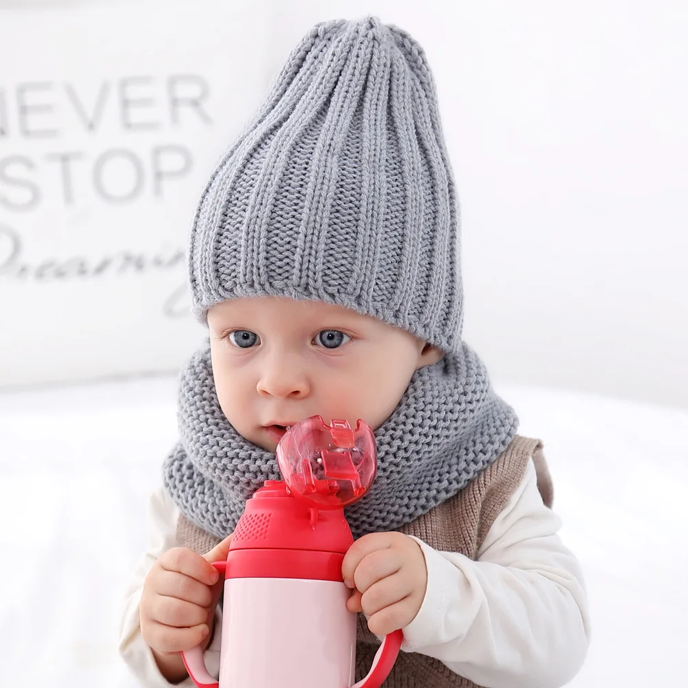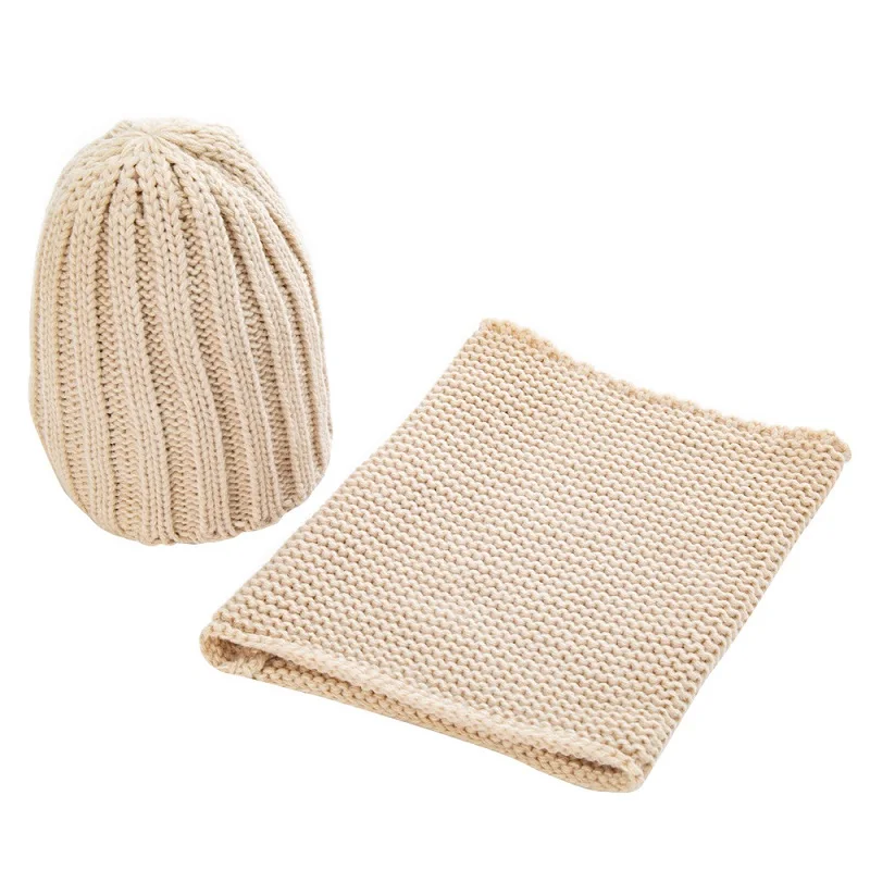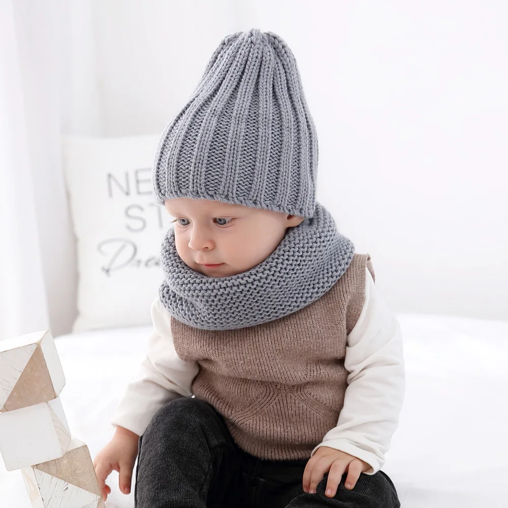 Шапка Вязаная Детская, зимняя, однотонная, шапка и шарф