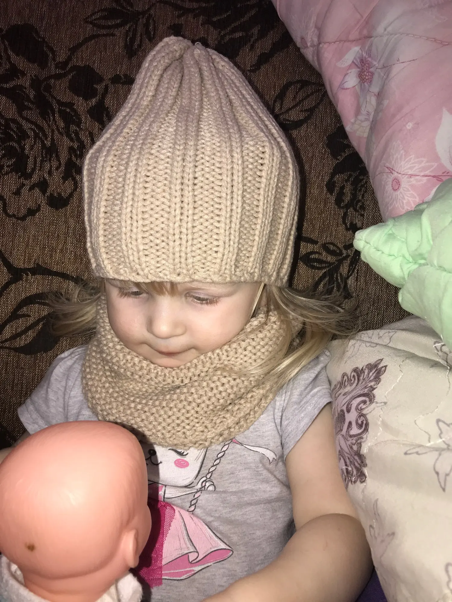Заказала 11.11 получила 2 января, цвет снуда и шапки немного отличается, смотрится симпатично, но конечно качество страдает. Размер на 9 месяцев хорошо, думаю весну отходим