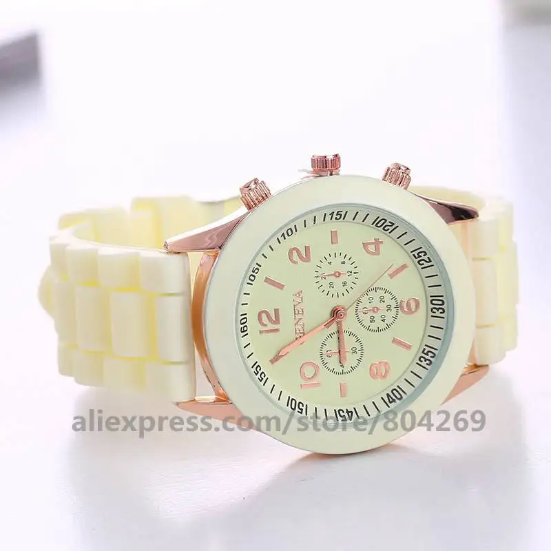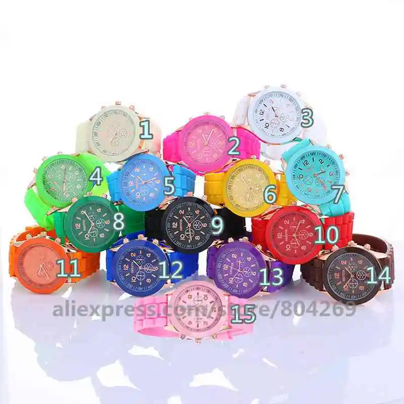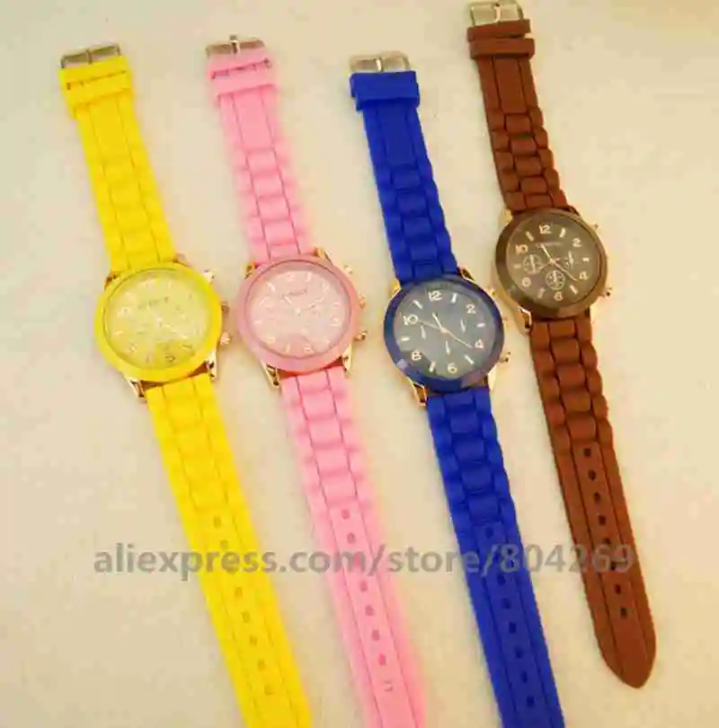 Оптовые продажи, распродажи Geneva Брендовые женские силиконовые часы Дамская мода платье кварцевые наручные часы Горячая оптовая продажа женские часы