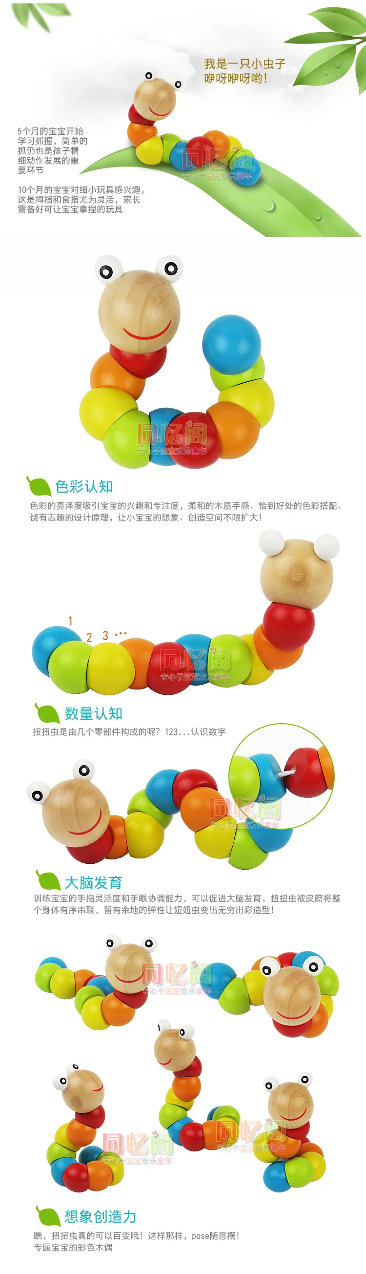 Гибкая игрушка для малышей, червь, гусеница, животное, кукла, деревянные развивающие игрушки, для 0-3 лет, разноцветные развивающие игрушки