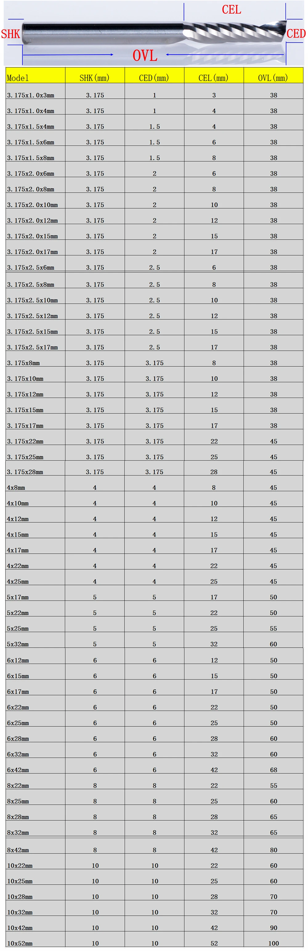 Диаметр хвостовика: 3,175/4/5/6/8/10/12 мм