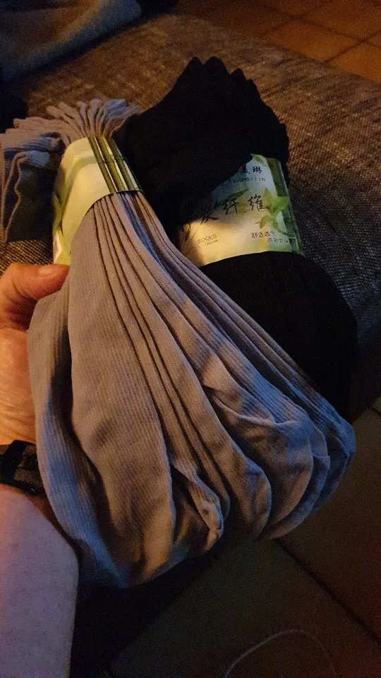 блин прикольные носки, вроде капрон, но чуть прочнее, состав ткани другой, более приятный. действительно тонкие. муж покрутил носом. а я от них в восторге, буду носить сама. они без пятки, поэтому и мне будут по размеру. намного прикольнее наших девичих, что продаются пачками по 50 штук на типа семейных ярмарках.