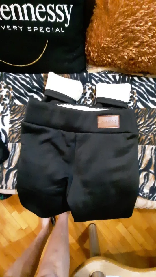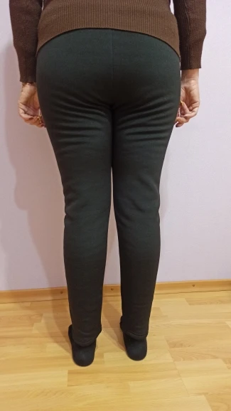 Не просто теплые, обтягивающие леггинсы, а полноценные теплые толстые штаны с искуственным мехом внутри - юбку сверху не наденешь. Описание соответствует! Начитавшись отзывов, на свои параметры 76/100 взяла 3XL. На моей фигуре сидят как-то непонятно, некомфортно - спереди в складки собираются, а сзади для попы объема не хватает, может потому что с одним швом. Талия занижена сантиметров на 5. При росте 162см длина до шиколотки. Доставили за 20 дней в Самарскую область.