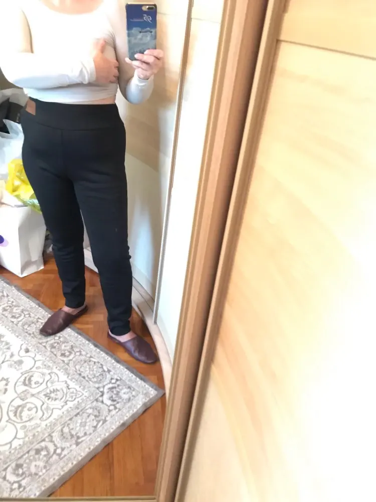 штаны отличные, все хорошо прошито, швы ровные, подтягивают фигуру. внутри приятный теплый начес. спасибо большое