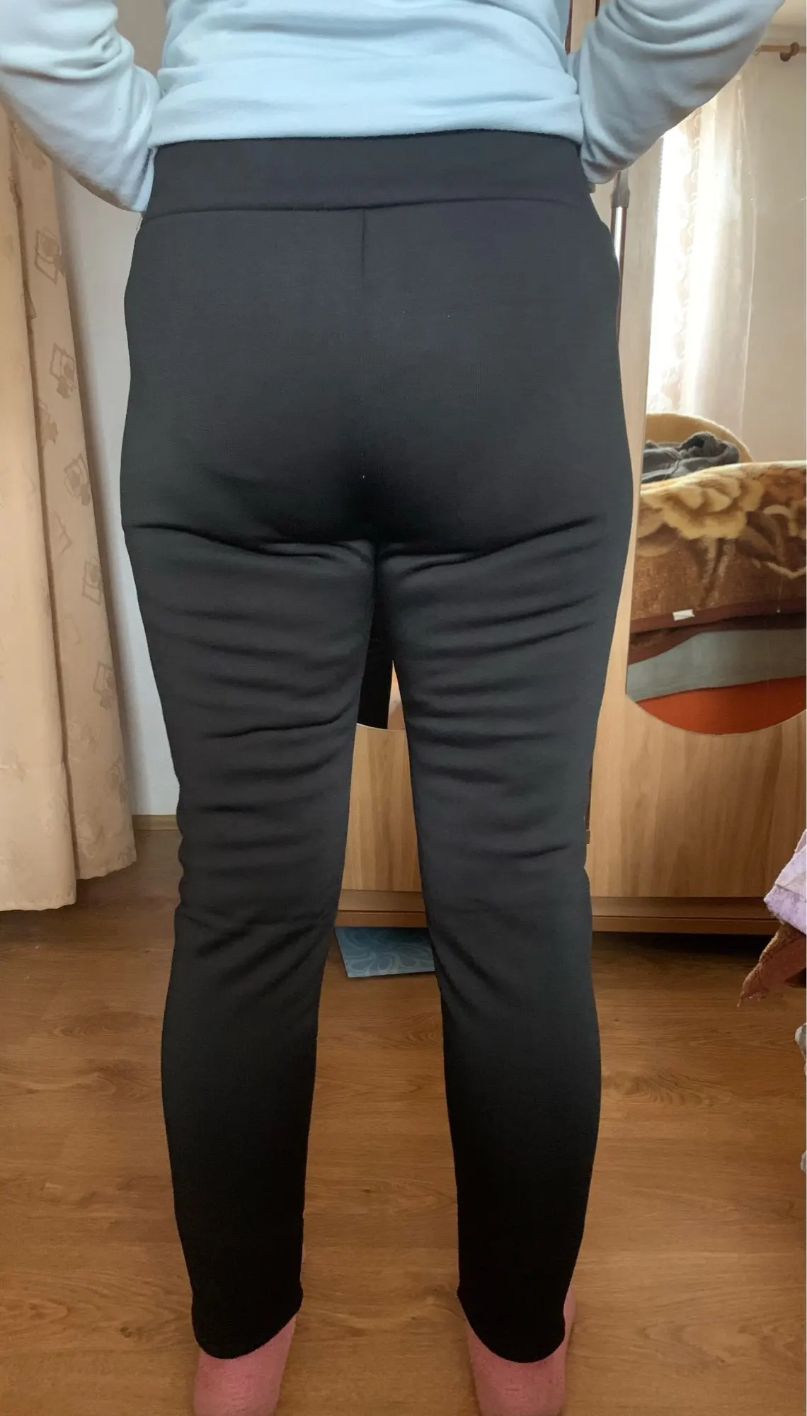 Штанишки соответствуют фото, теплые. Изначально выбрала себе размер XXL, но решила что будут большие, написала сразу продавцу, чтобы отправил XL,продавец отреагировал быстро, отправил тоже быстро. На мой рост 165,от76,об91 размер XLсели свободненько, промахнулась всё таки с размером, нужно было брать меньше,но в принципе это же не лосины и нигде не давит.