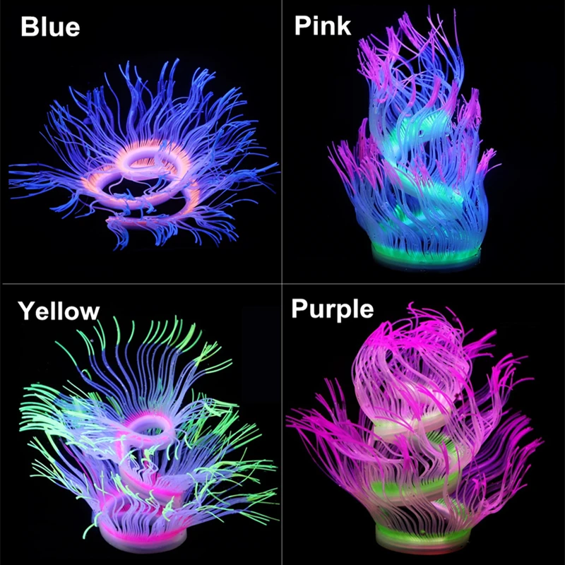 Силиконовый гибкий морской анемон для аквариума, Мягкий коралл, украшение для аквариума, Коралловое растение, украшение для аквариума, аксессуары 6 цветов