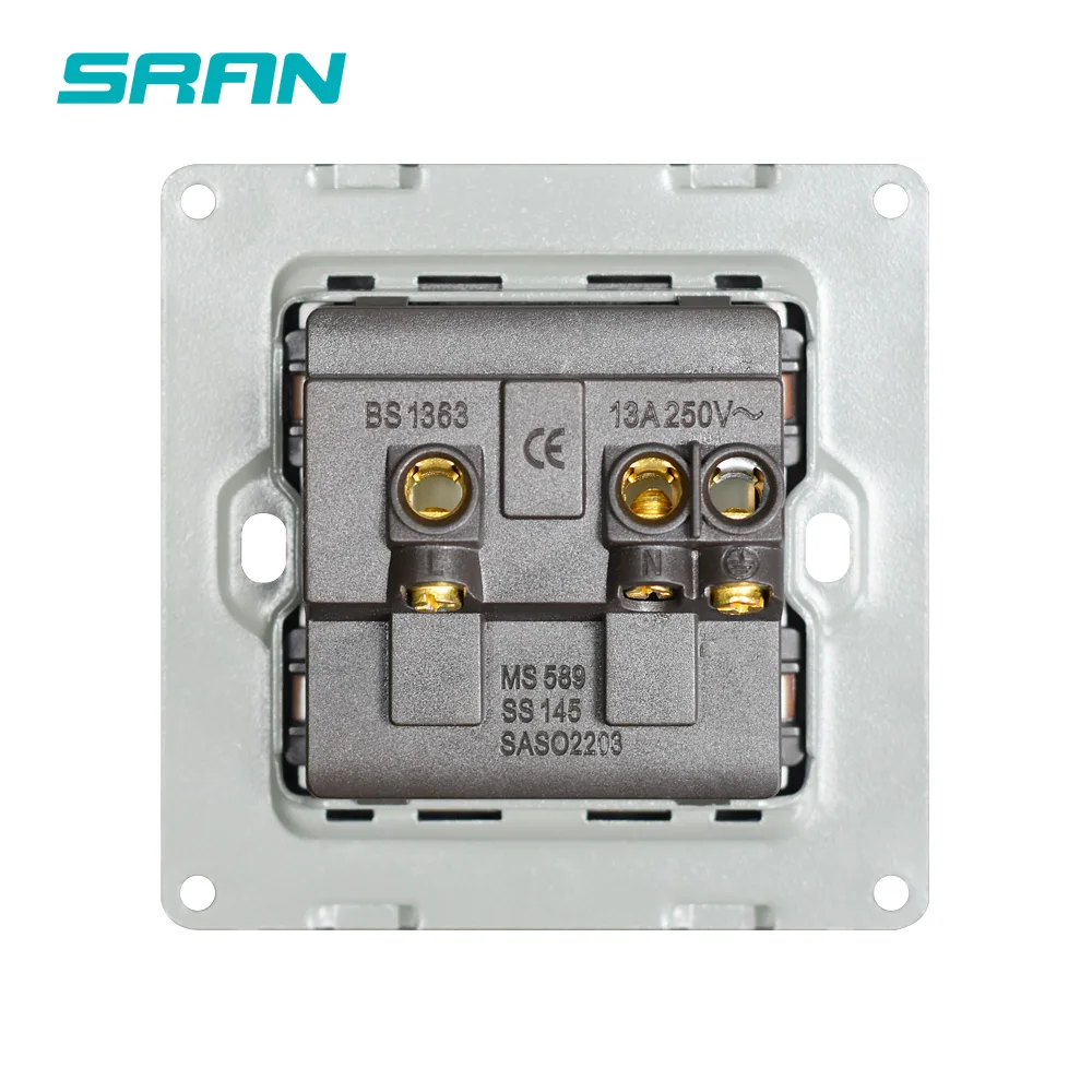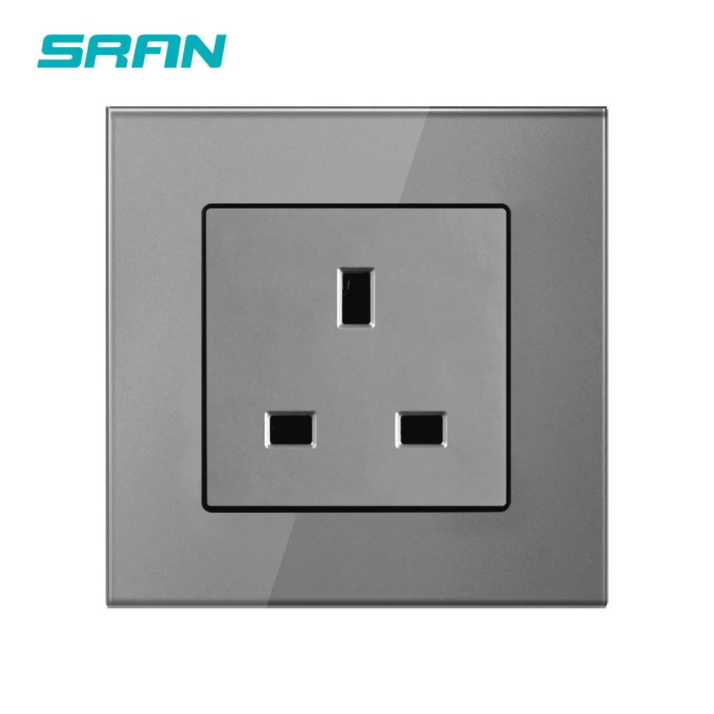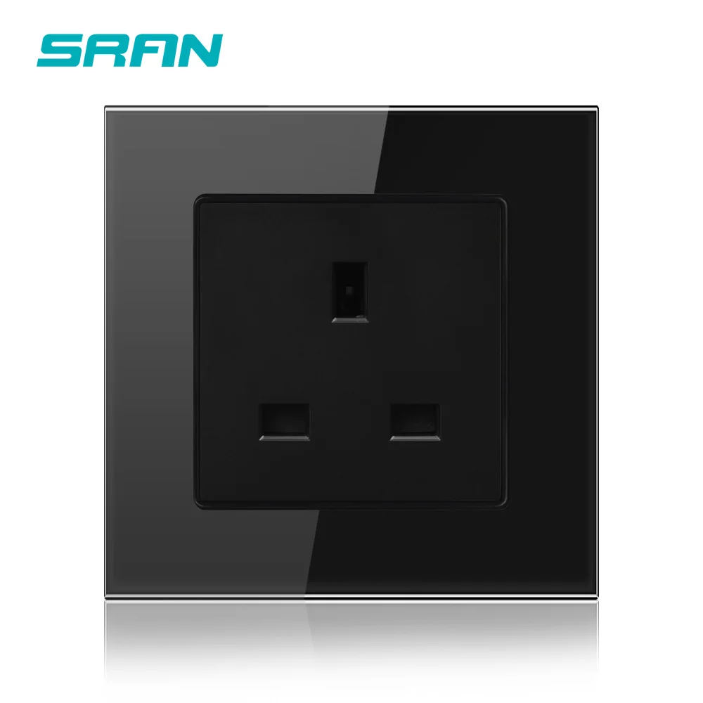 Белая панель из закаленного стекла SRAN, фото, функциональная клавиша для настенной розетки UK, 86*86 мм, аксессуары для украшения дома