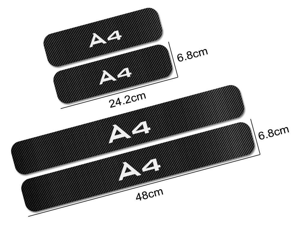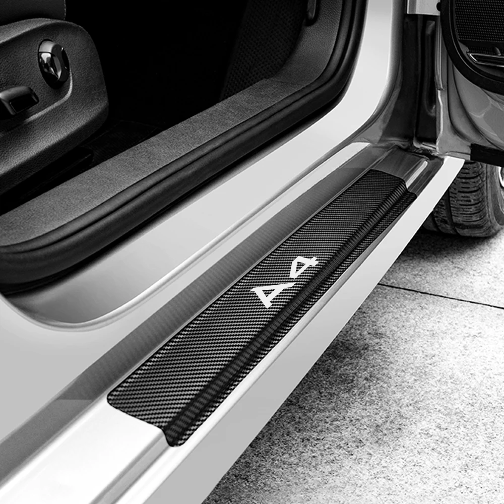 Наклейки для защиты порога двери автомобиля Audi A4 B9 B8 B7 B6 B5, 4 шт., наклейки из углеродного волокна, наклейка, накладка, аксессуары для тюнинга автомобиля