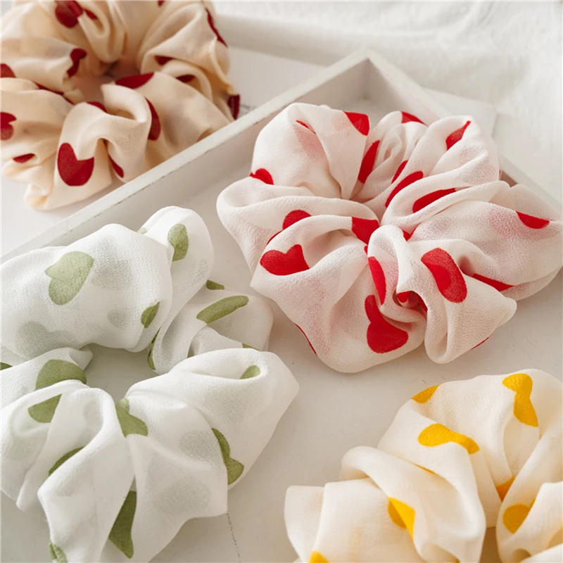 Шифоновая заколка для волос с принтом в виде сердца, эластичная резинка для волос заколка для хвоста, аксессуары для волос для девочек