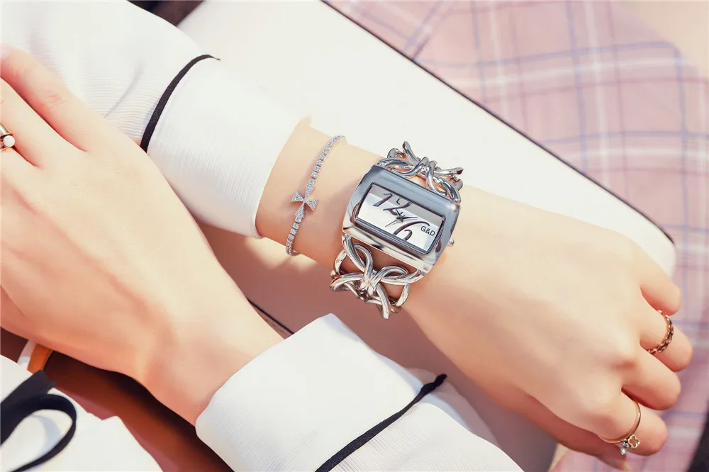 Часы наручные G D женские кварцевые, люксовый бренд, прямоугольные, серебристые