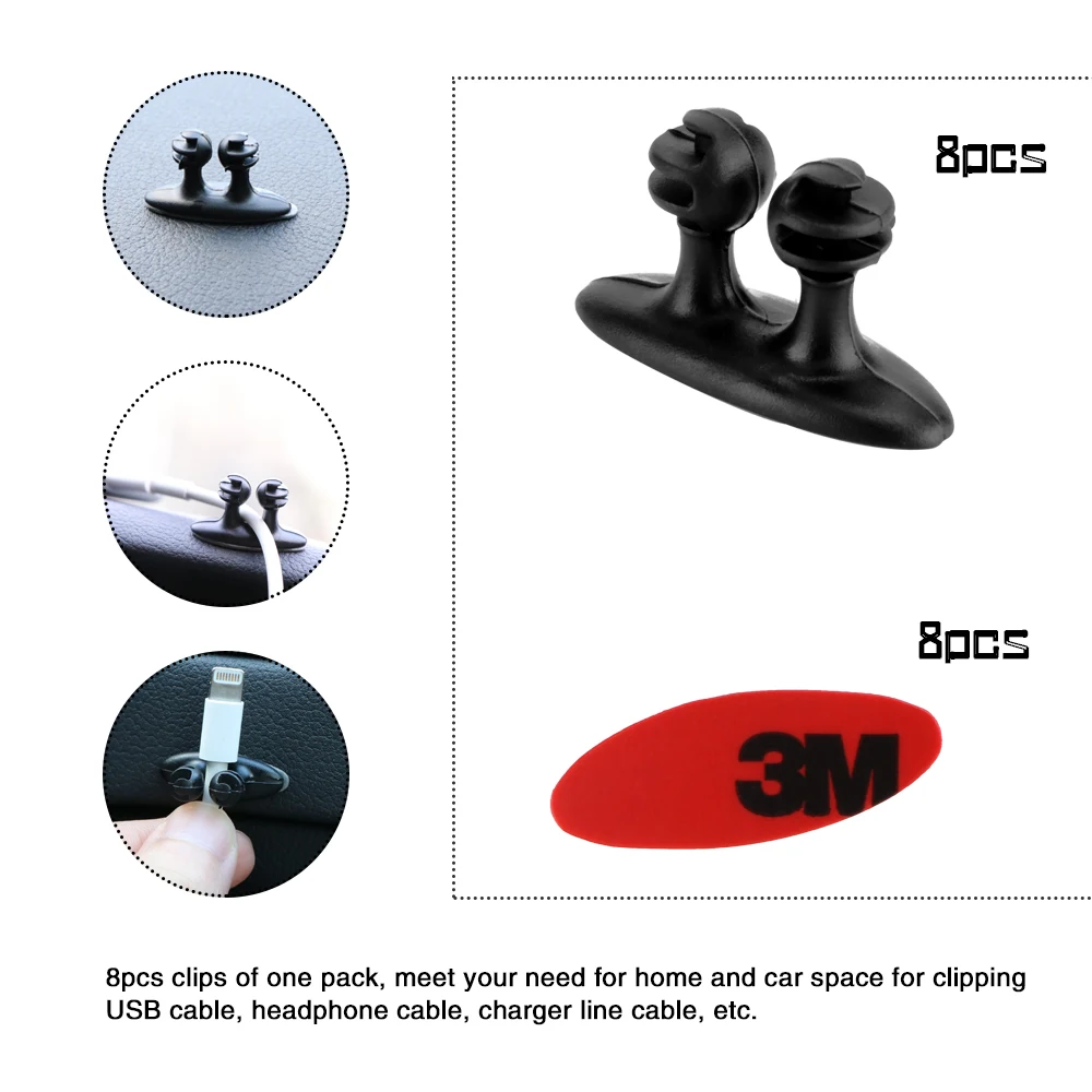 8 шт.лот, самоклеящийся зажим, автомобильный держатель кабеля, зажим для шнура, зажим для галстука, органайзер, зажим для кабеля наушников
