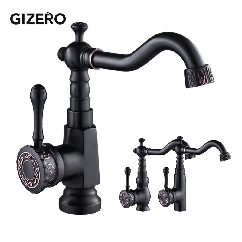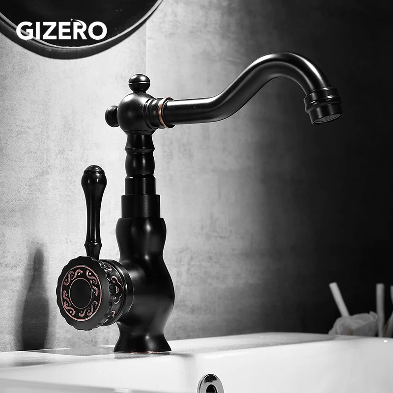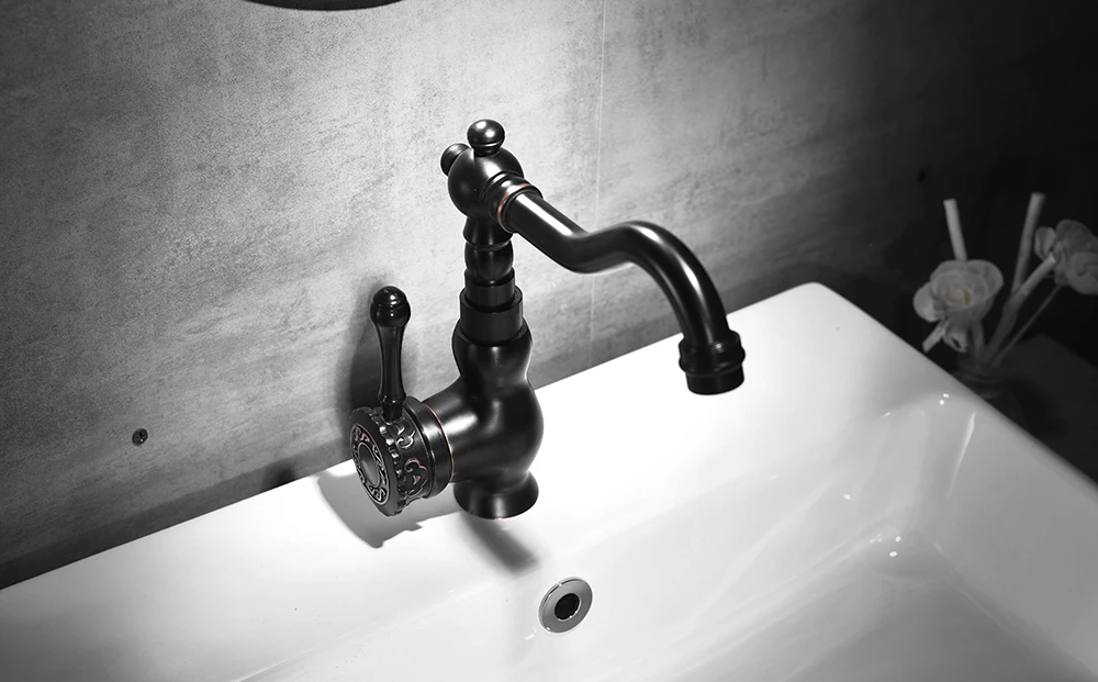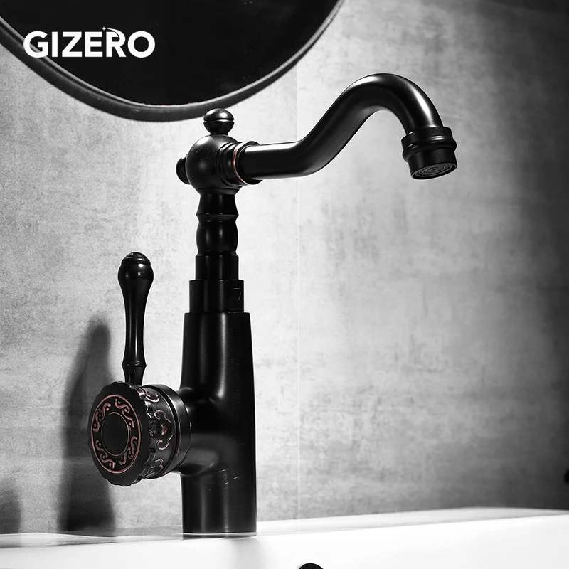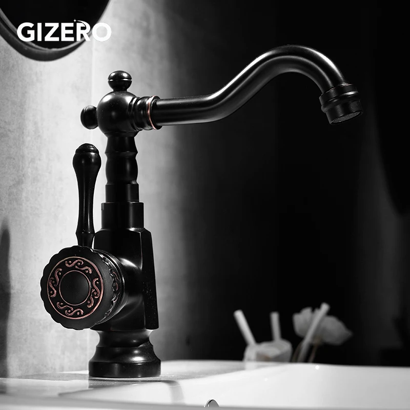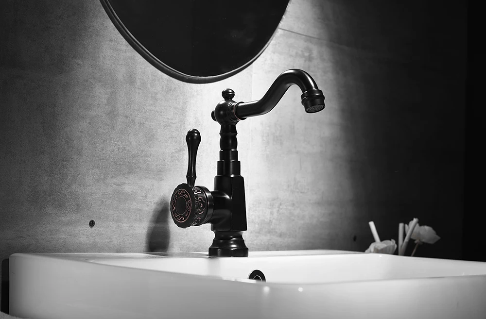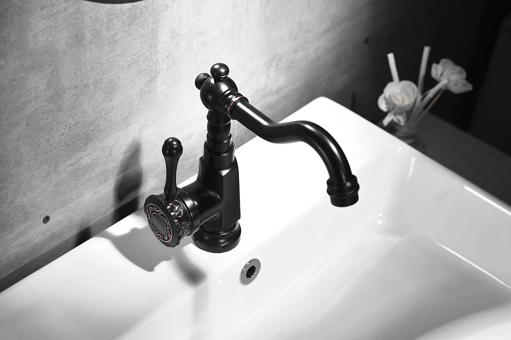 Новое поступление, черный смеситель для раковины, кран для ванной комнаты смеситель холодной и горячей воды, поворотная труба резной смеситель, 360, смеситель для раковины ZR398