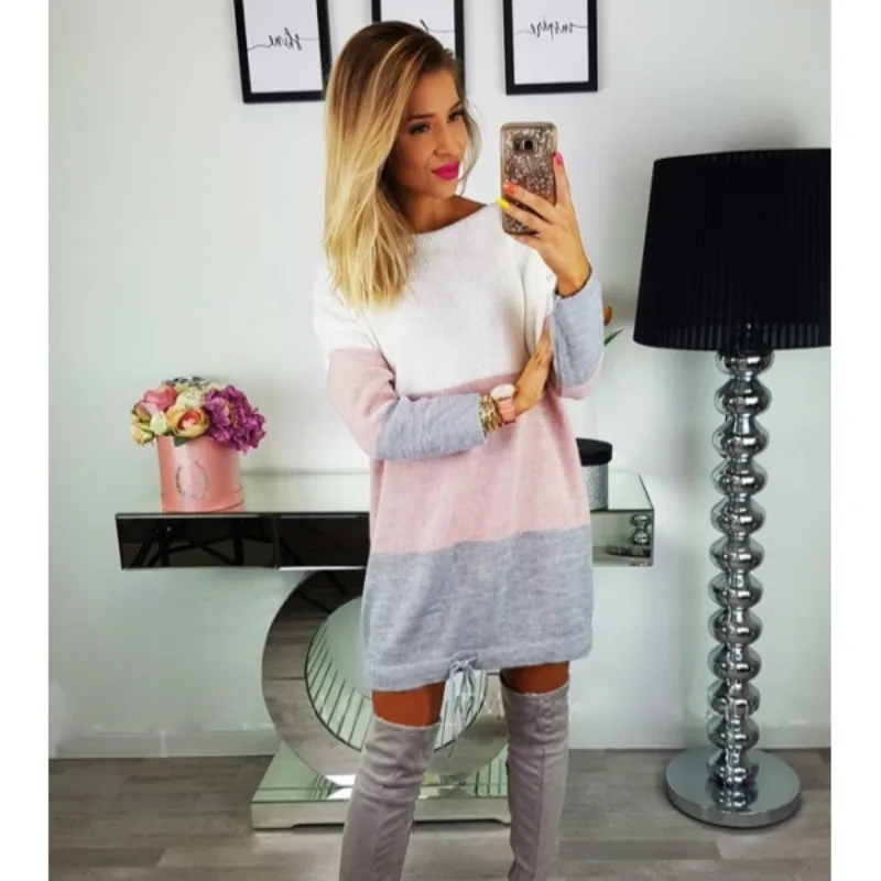 Платье-Свитер для беременных женская одежда 2018 в полоску с длинным рукавом платья для беременных