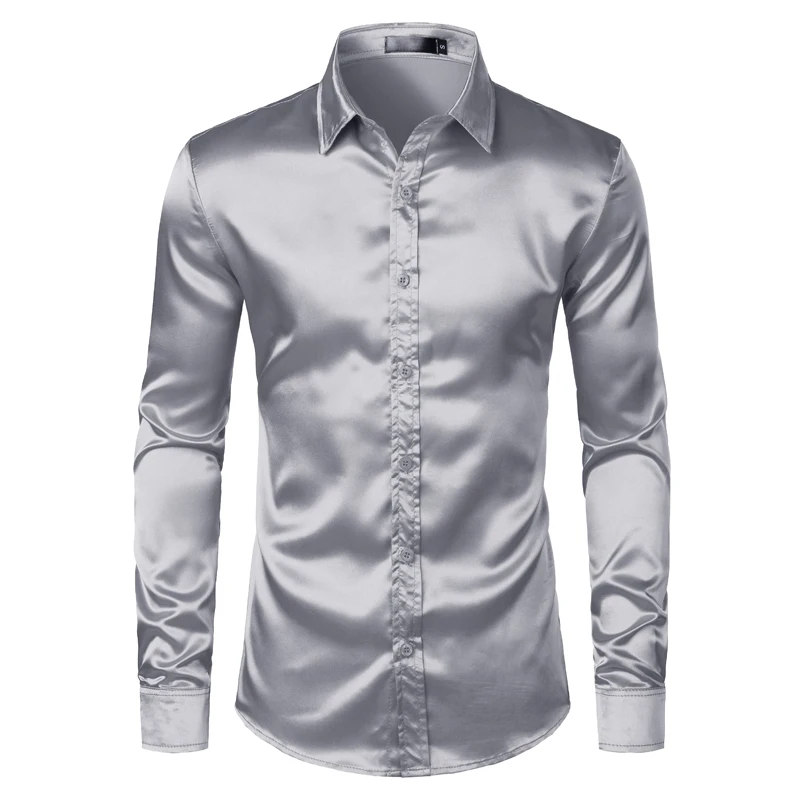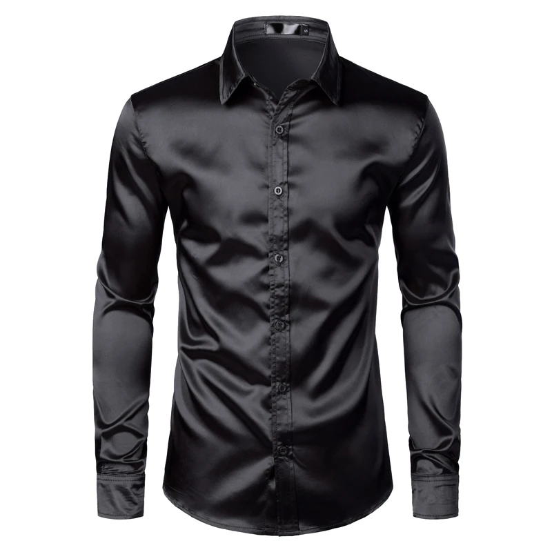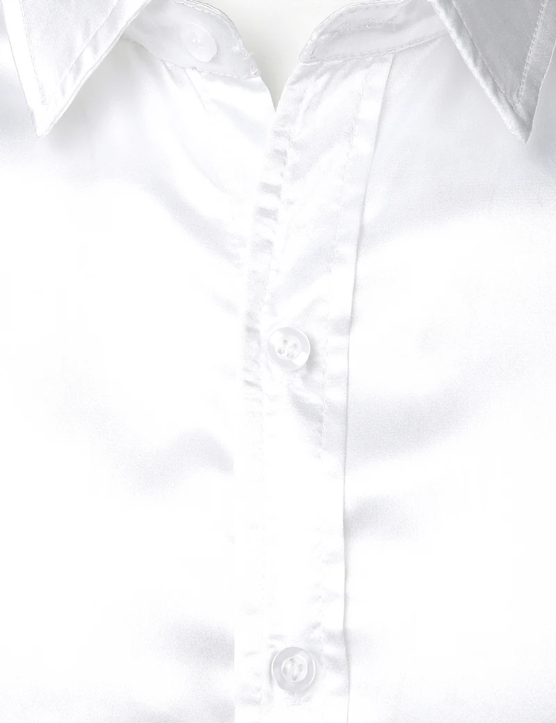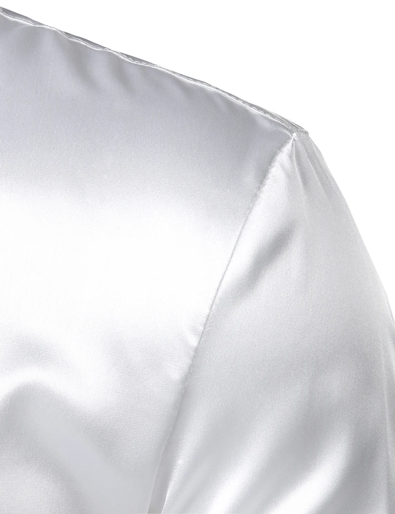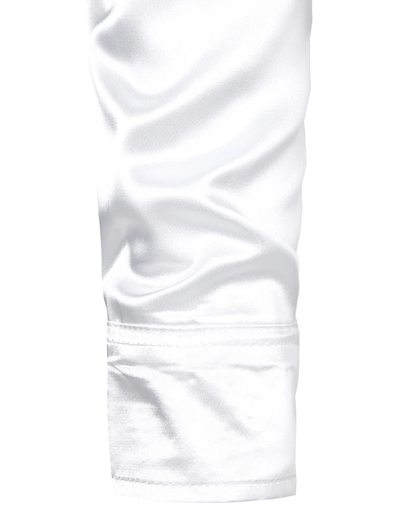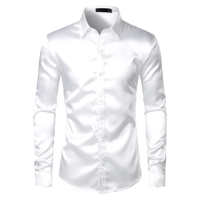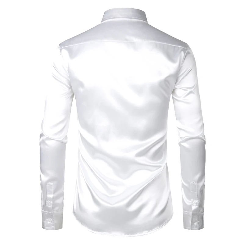 Рубашка мужская атласная, Шелковый смокинг, с длинным рукавом, приталенная, повседневная, для свадебных вечеринок и танцев, белый цвет, 2019
