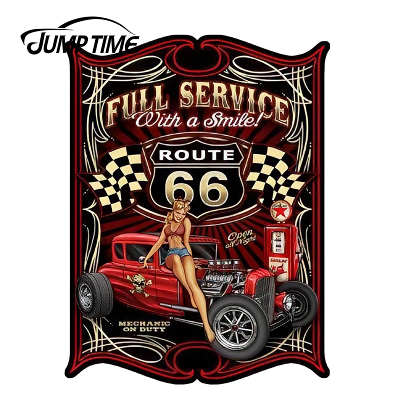 JumpTime 13 см x 9,8 см Hot Girl Texaco полное обслуживание с улыбкой Route 66 Hot Rod Pinup Girl стикер 3D Автомобильная наклейка защитная пленка