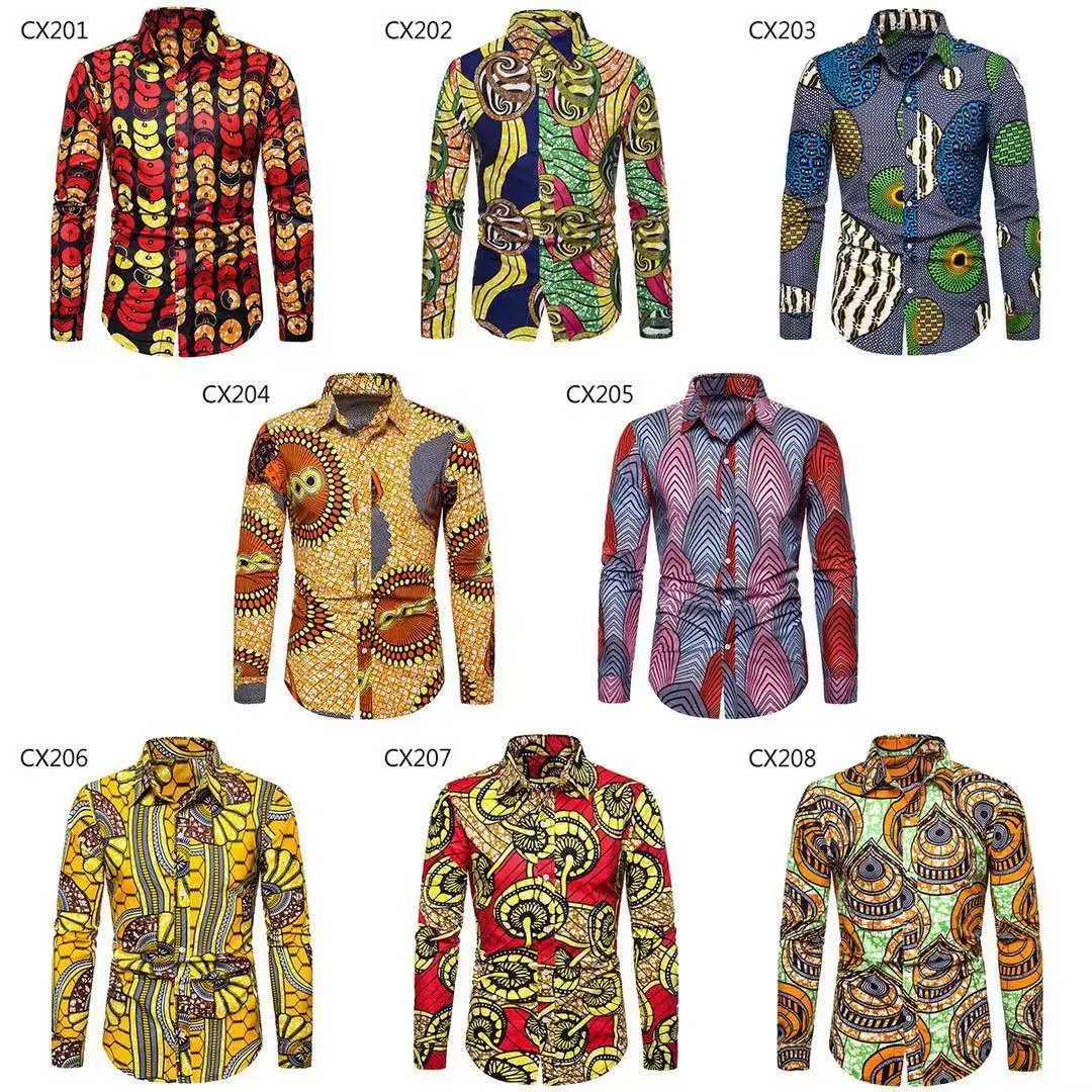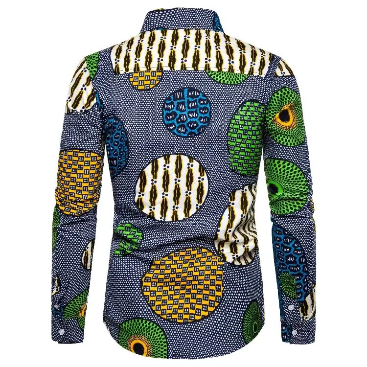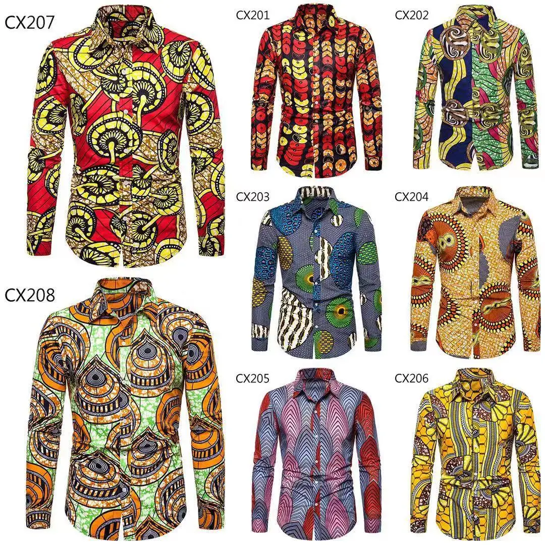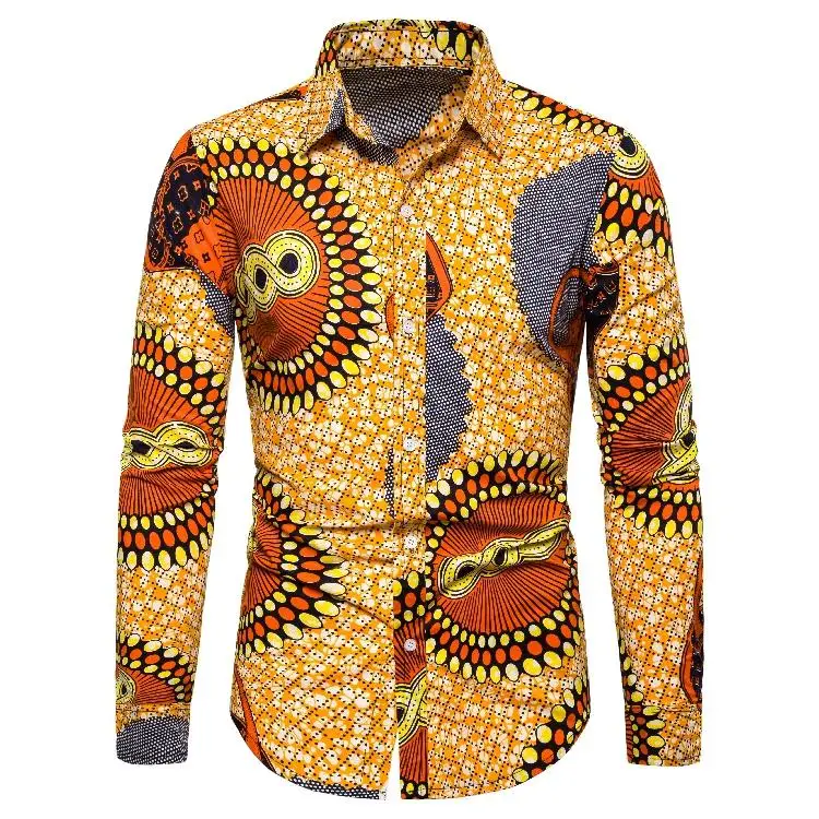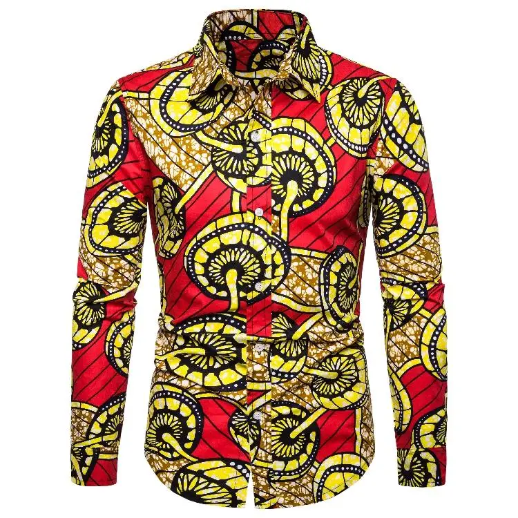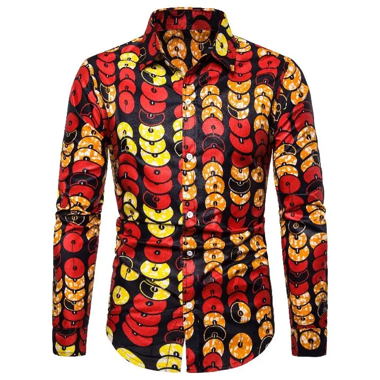 2019 Африканский Национальный стиль Мужская мода печать с длинными рукавами рубашка Мода Европа и Америка код 3XL