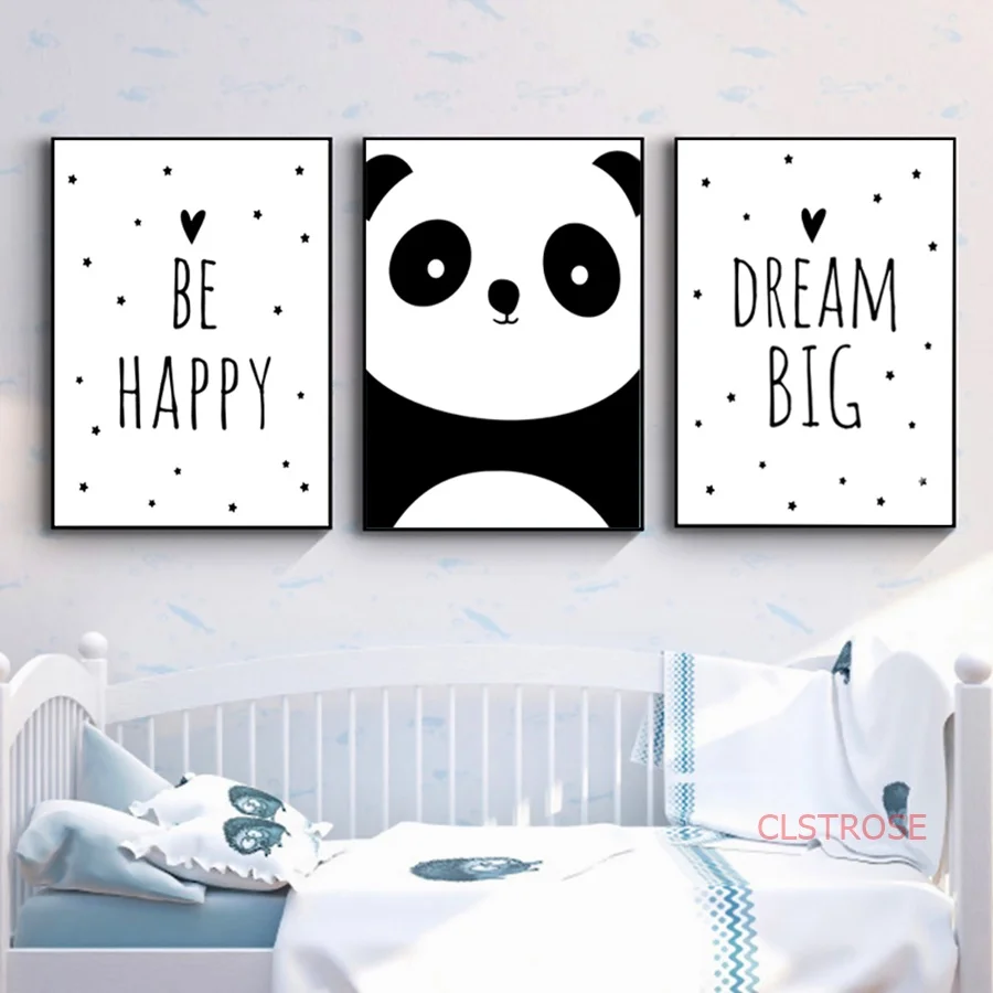 Скандинавская детская декоративная картина для детской комнаты, настенная Картина на холсте с животными, панда, счастливая спальня, Постер и принты без рамки