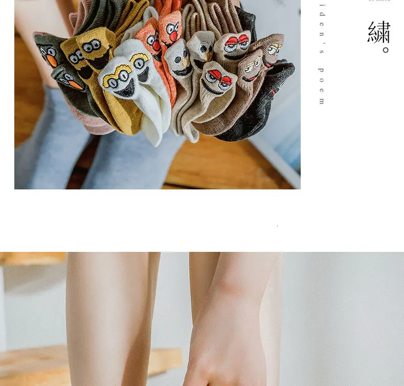 Kawaii вышитые выражение 5 парупак. женские Носки Happy Модные боти...