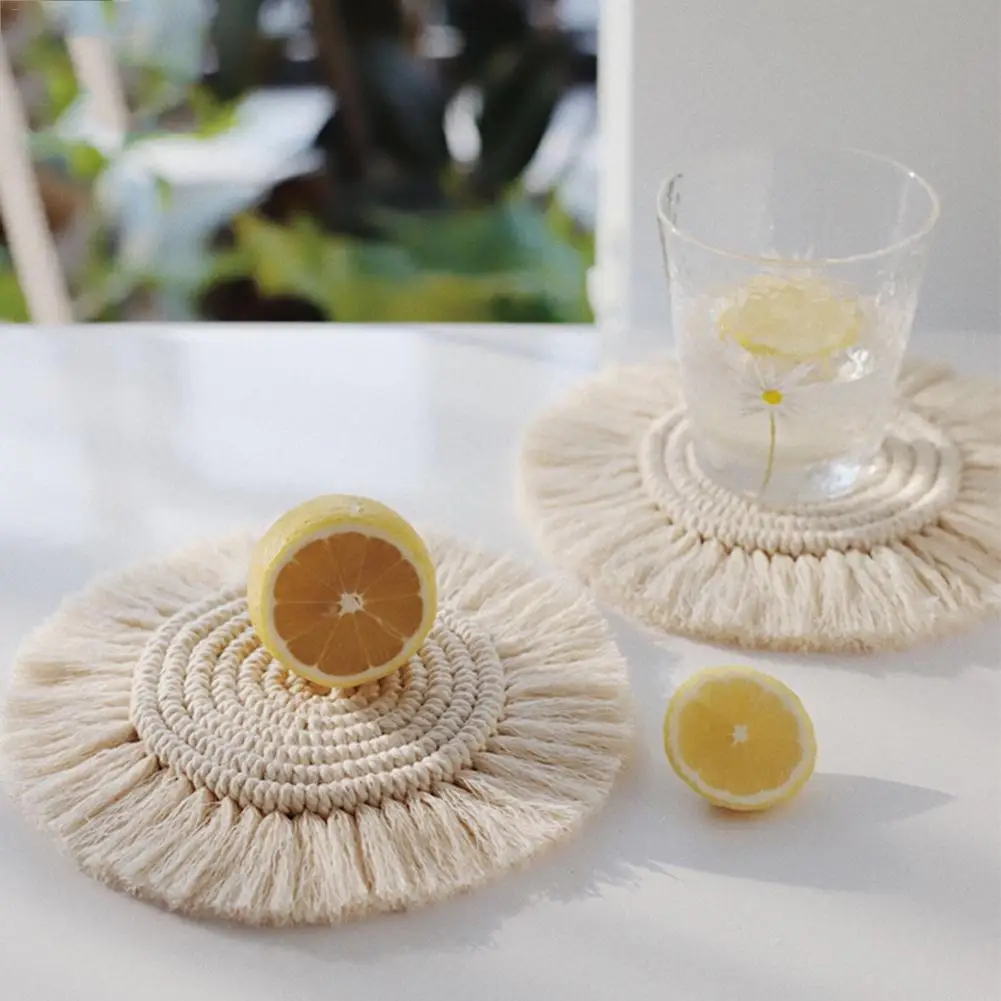 Подставка под макраме, коврик для чашки, богемная хлопковая веревка...