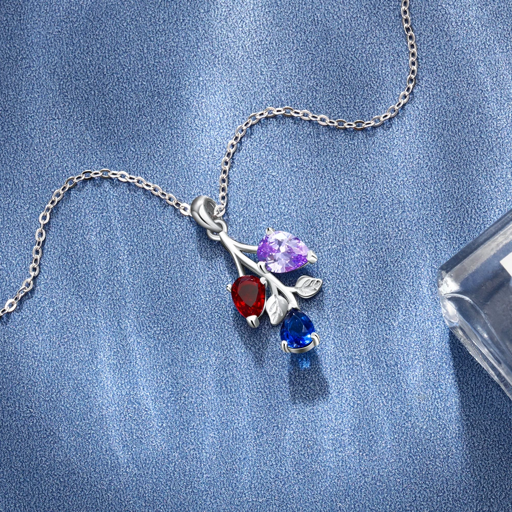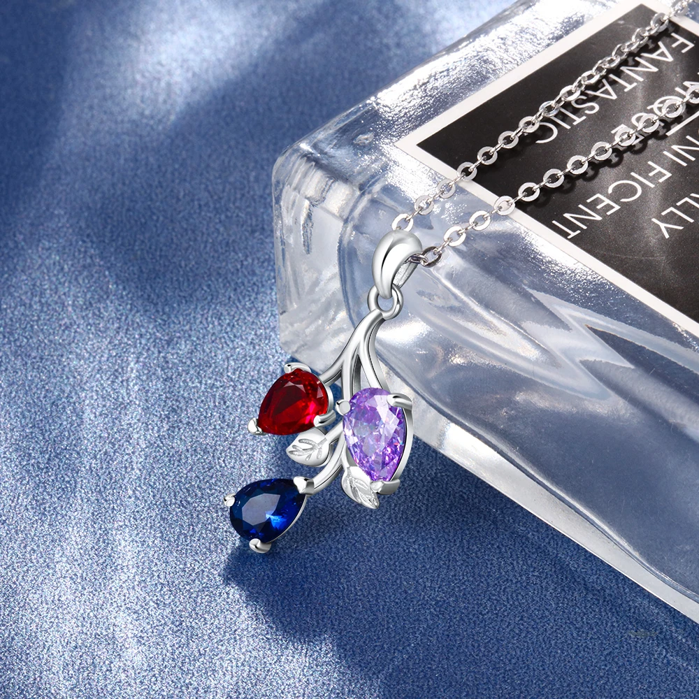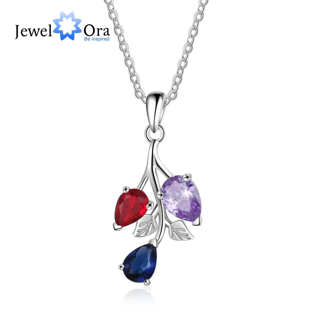 Персонализированное ожерелье с листьями для мамы, на заказ, сделай сам, 3 камня на день рождения, подвески для женщин, модные праздничные ювелирные изделия (JewelOra NE103301)