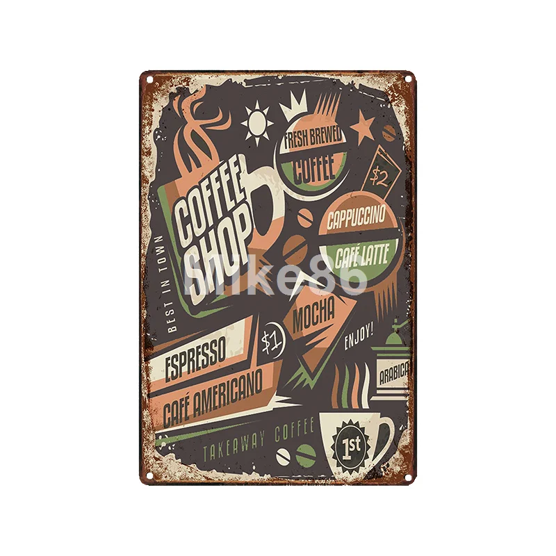 Mike86 оловянные винтажные настенные постеры с меню кофе, картина и...