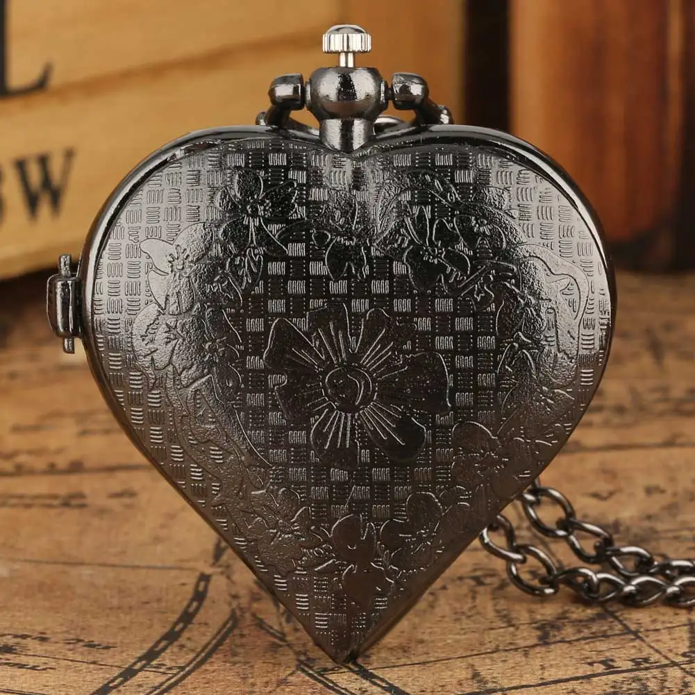 Романтические кварцевые карманные часы в форме сердца, бронзовыеСеребристыечерные ожерелья, подвеска на цепочке, женские часы, сувенирные подарки для девушек и женщин