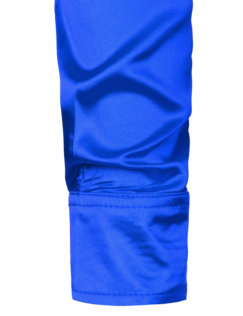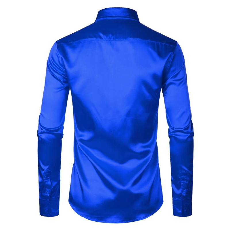 Атласная Мужская рубашка, роскошная брендовая приталенная классическая сорочка для свадьбы и вечеринок, Повседневная сорочка, ярко-синий шелк