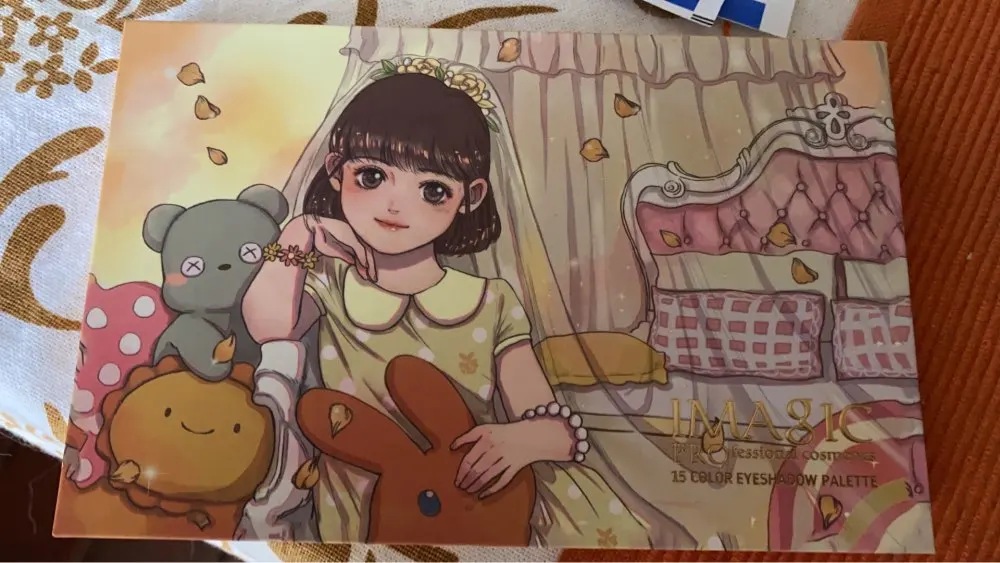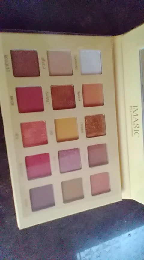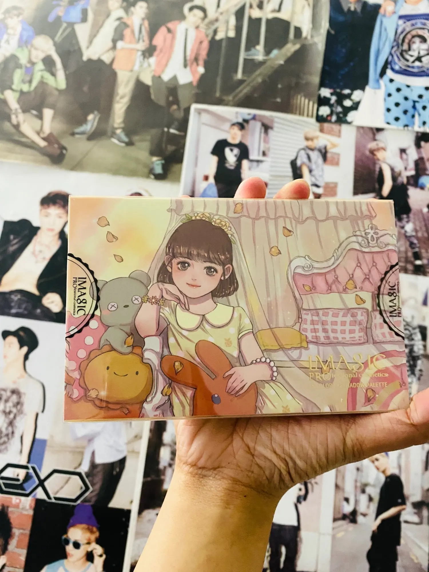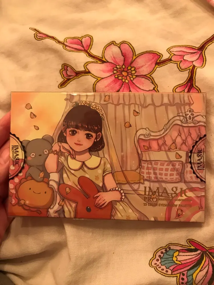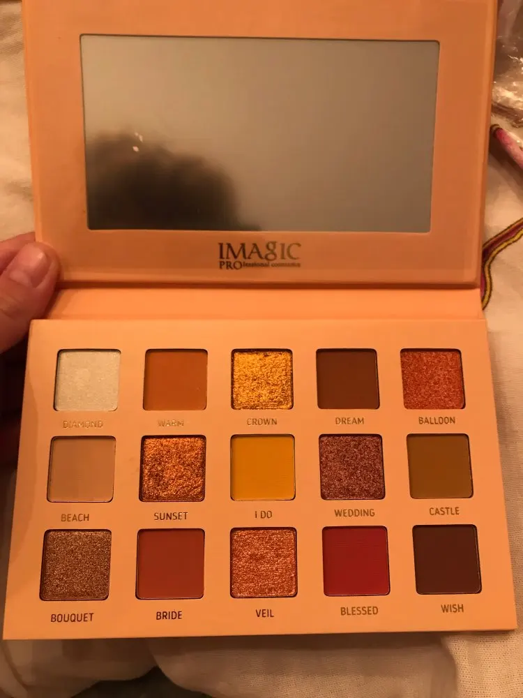 Super cute make-up palette. Looks exactly like the pictures from the seller. Good quality eye shadows that last most of the day. ♥