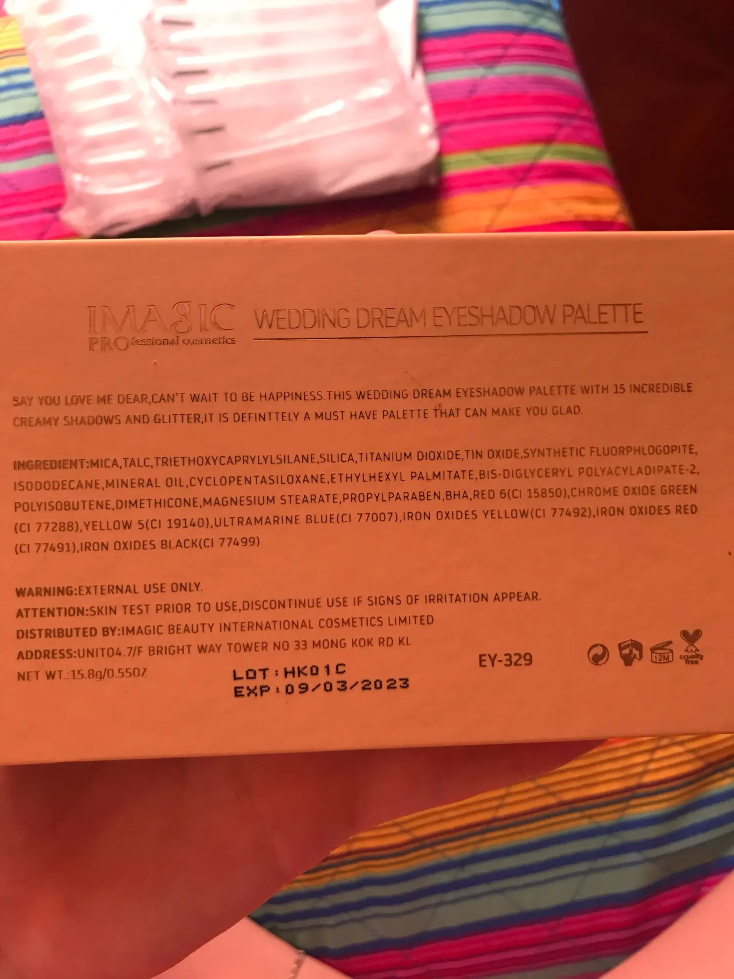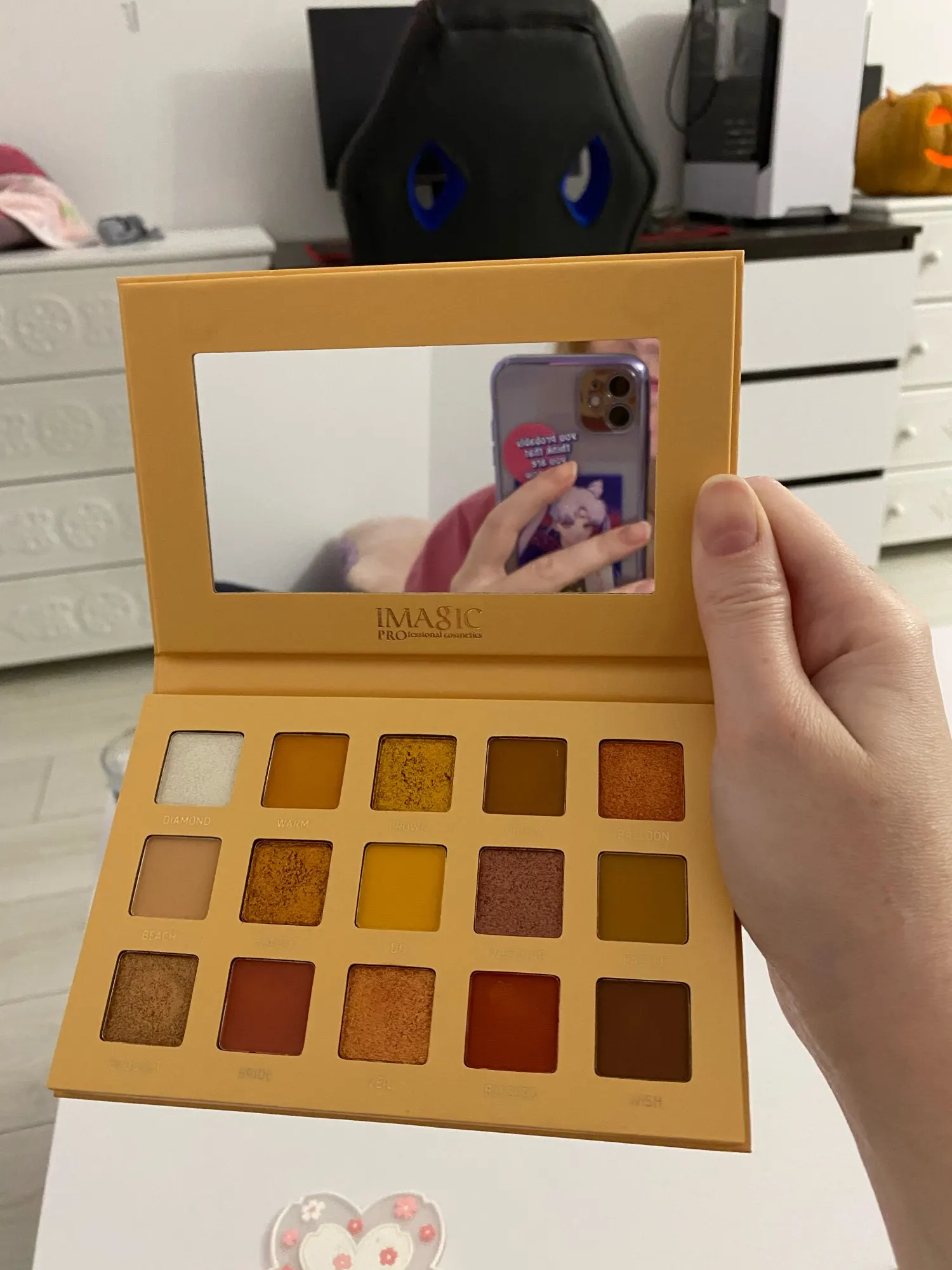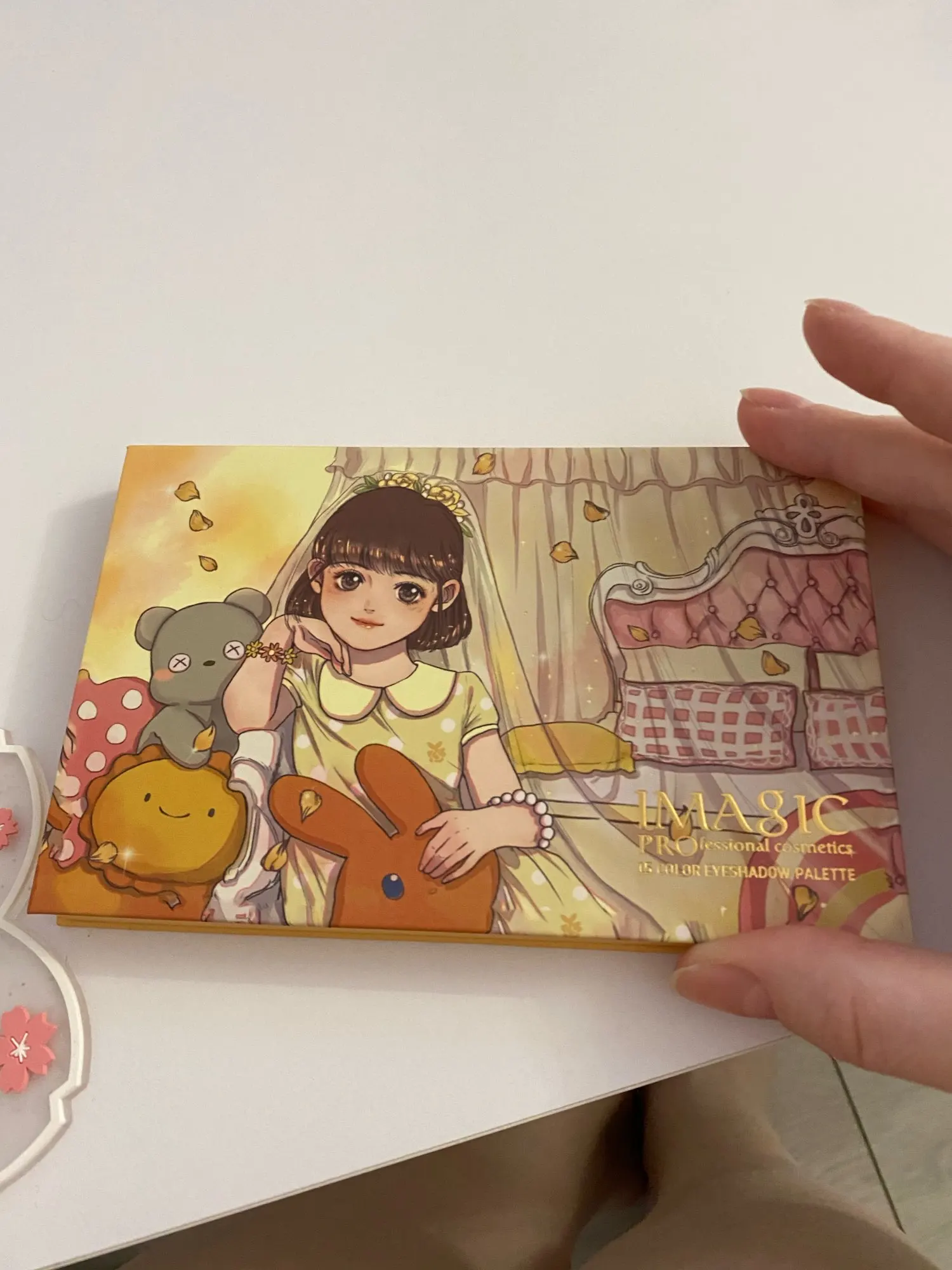 Super cute make-up palette. Looks exactly like the pictures from the seller. Good quality eye shadows that last most of the day. ♥