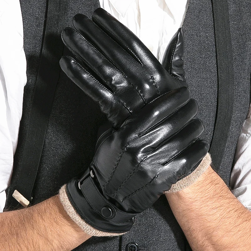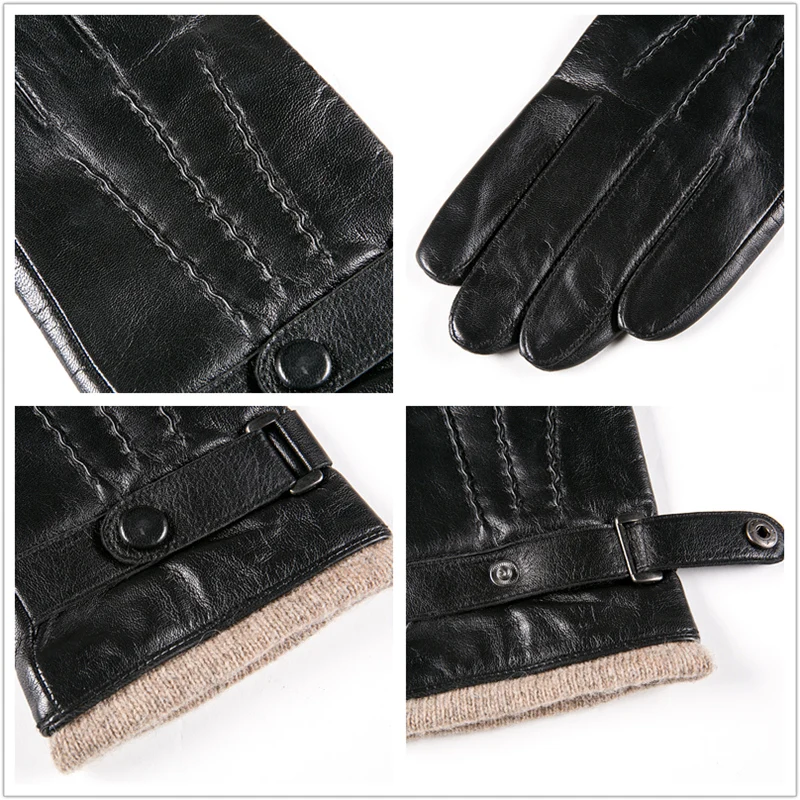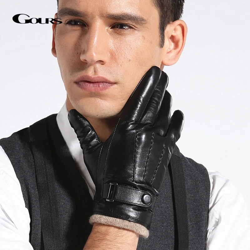 Мужские зимние перчатки GOURS, черные перчатки из натуральной козьей кожи, с шерстяной подкладкой, для вождения, Модель 005, 2019