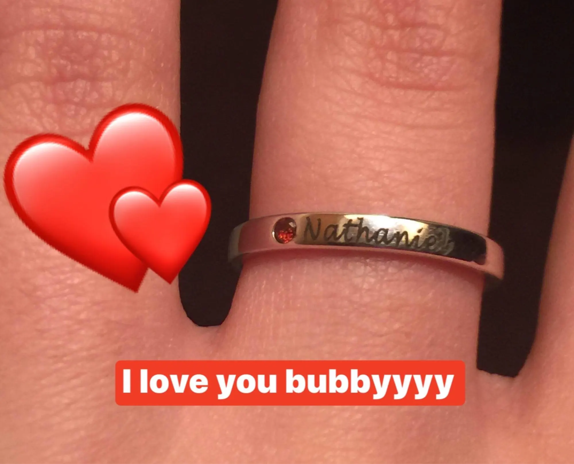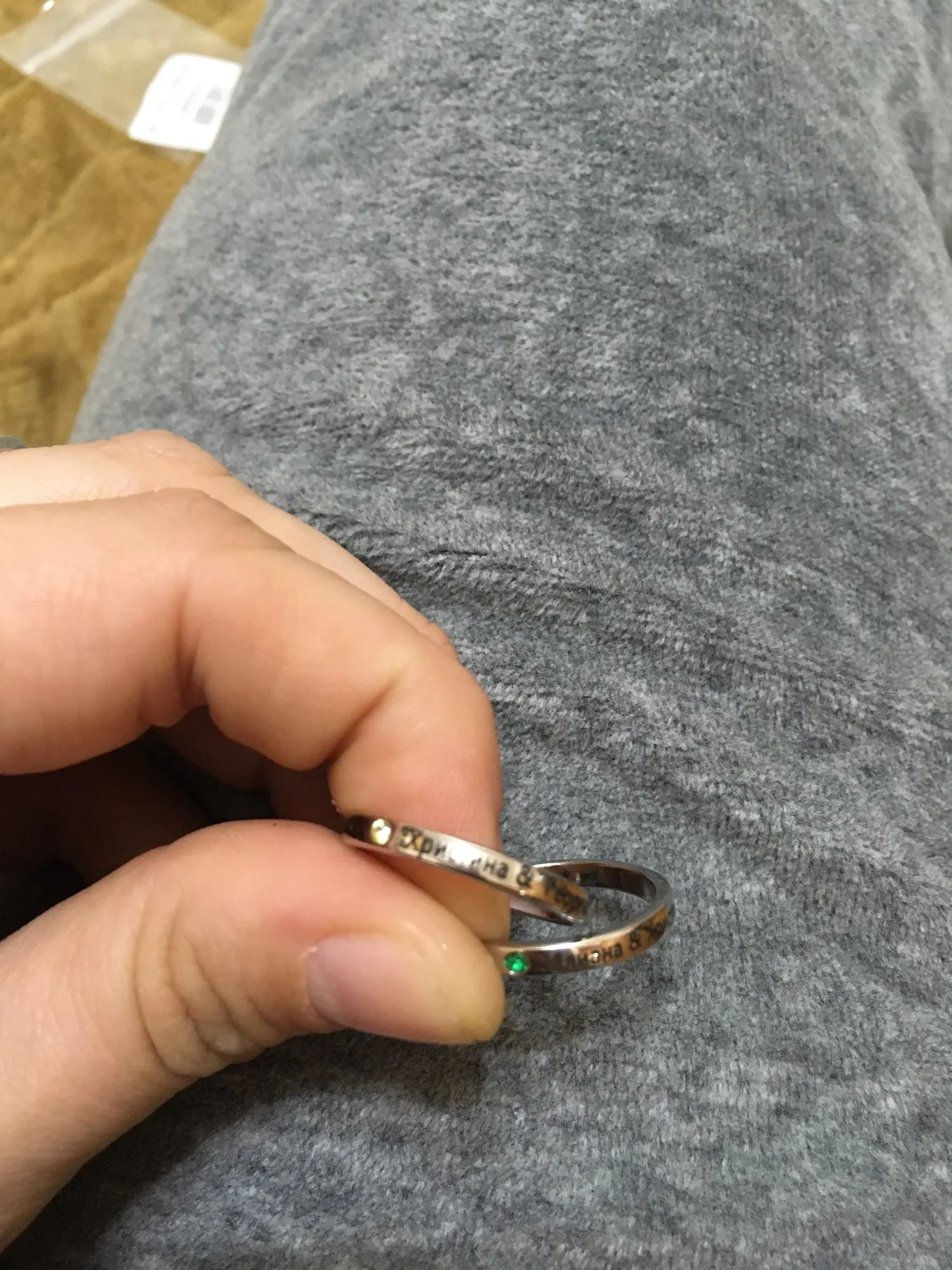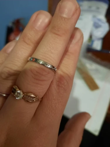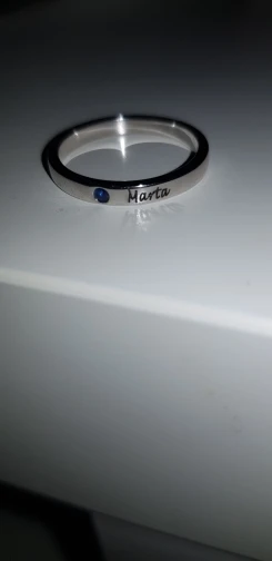 Красивое и очень нежное кольцо. Он прибыл очень быстро и общение с продавцом. Размер совпадает. Имя немного маленькое, но красивое. Я рекомендую это.