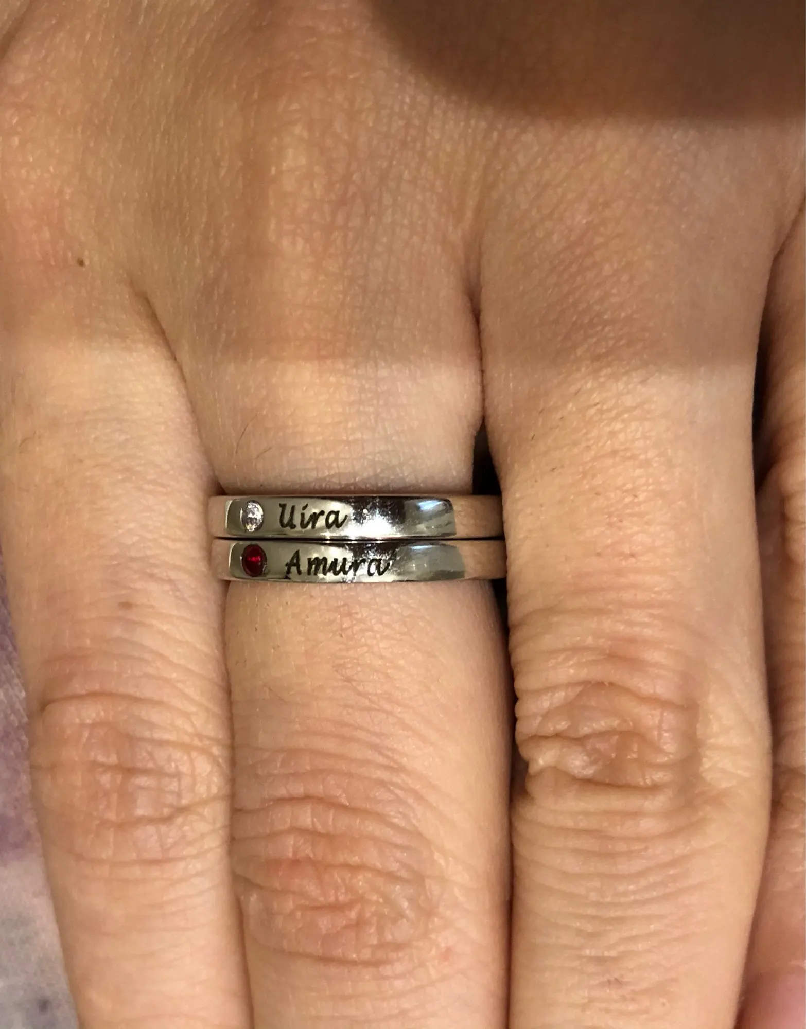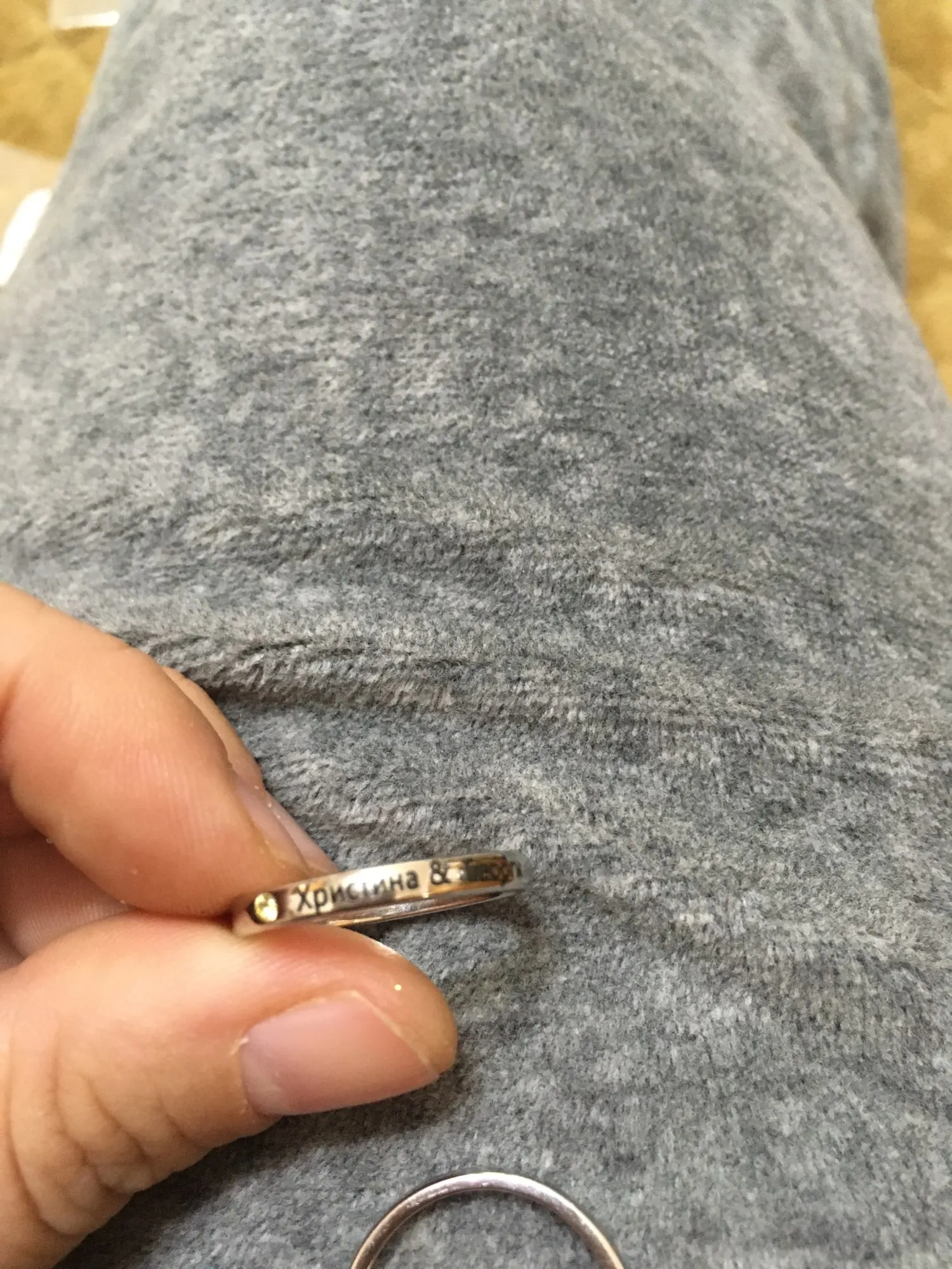 Размер больше, чем я измерил. И была проблема с заказом. Я заказываю два кольца с разными именами, но получил два кольца с одинаковым именем.